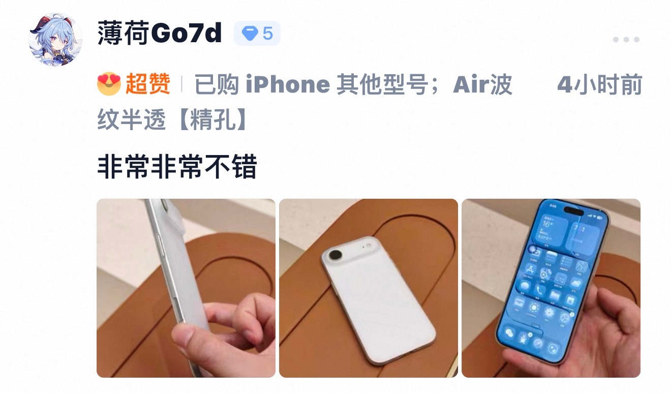超轻薄 iPhone Air 磨砂波纹壳,可选大孔、精孔。废键设计,有好手感,也
