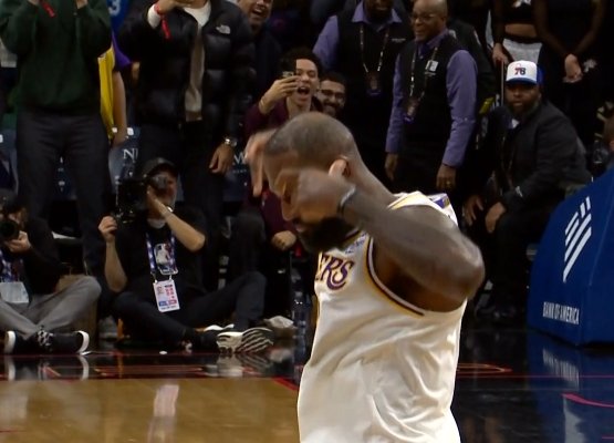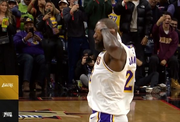 在今天湖人客场以112:108力克76人的比赛中,伟大的勒布朗-詹姆斯再次奉献了