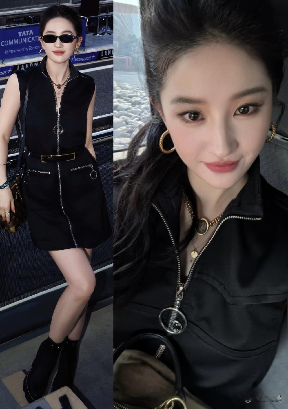 刘亦菲是不是瘦了?她竟然敢穿那么短的裙子了,她之前长胖了点,一直都穿长裙,超过膝盖的那一种,可以遮住有点粗的小腿。 这两天她又飞到阿布扎比F1赛场参加活动了,感觉她风格大变。 难得看见她穿那么短的裙子,并且都是一身黑,有点很酷的样子,拽拽的。 她平时的风格都不是这样,走红毯的时候都是浅色系的礼服,温柔优雅大方。 看样子应该是去参加活动,娱乐圈没有哪个明星像刘亦菲这样红了近20年,口碑一直都这么好,她真的有个人魅力! 大家喜欢她什么呢?