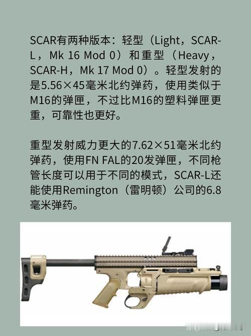 SCAR突击步枪核心信息 一、基础属性与型号区分 1. 核心定位 比
