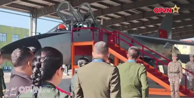 越南青年军官,参观中国歼-16,诸多保密处被布遮盖,越南电视画面,歼-16座舱关键部分没给越南人看,歼轰-7A 猎豹座舱盖打开,让越南军官们看了够,不让他们看歼-16是对的,防人之心不可无。