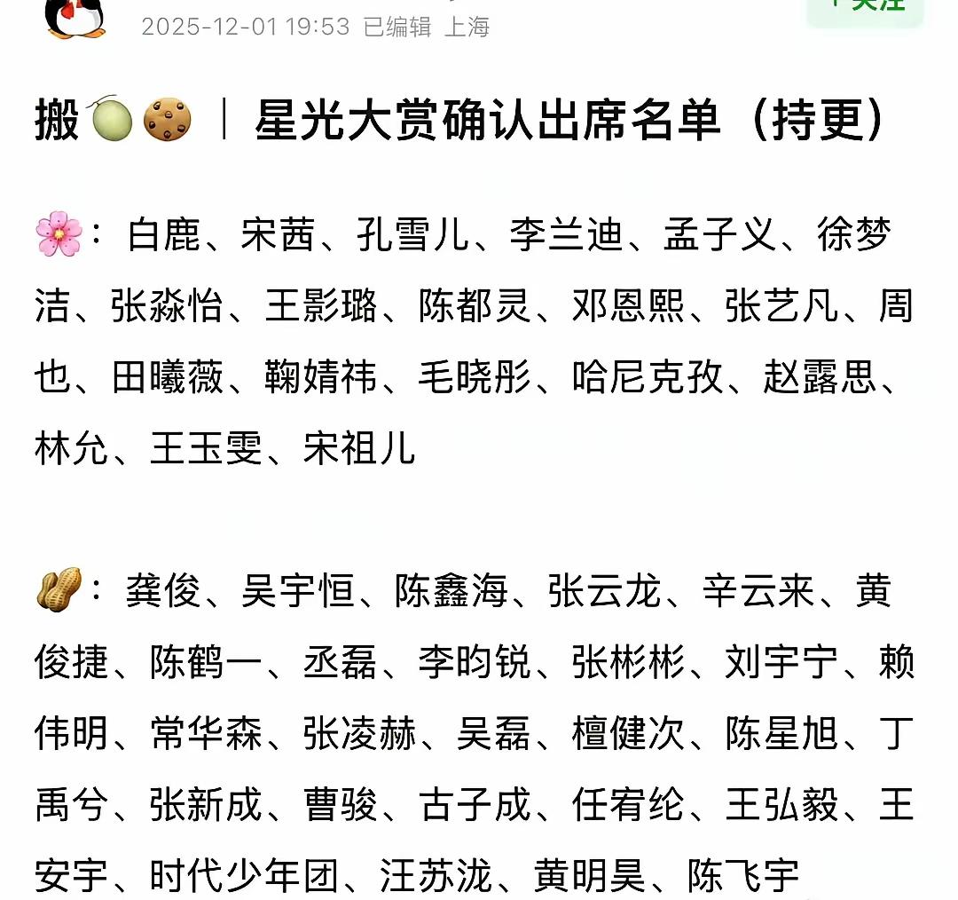 今年腾讯视频星光大赏的阵容, 说是“星光黯淡”都算给面子, 简直是把“内娱后继无人”四个字焊在了海口的舞台上。 85花集体跑路就算了,号称扛大旗的95花们,靠一部没破亿的剧和待播饼就敢争压轴,粉丝撕得比正主实绩还凶,这哪是星光大赏,分明是“数据吵架大赛”现场。 男艺人这边更是凑数感拉满,翻来覆去就那几个常驻流量,既没国民度顶流撑场面,也没实力派镇场子,连短剧演员都能硬闯顶级盛典——不是说短剧演员不配,而是这阵容混搭得像平台清艺人库存,把能叫上名的、叫不上名的全塞进名单,凑出一堆人头却没半个能扛话题的。 对比2019年杨幂、赵丽颖同框、肖战王一博同台的神仙场面,今年这阵容连“群星”都算不上,顶多算“平台艺人团建”。热搜数从去年127个跌到32个,内场前排还留着空位,连为85花准备的“巨星通道”都得临时覆盖,这哪是星光大赏,分明是“星光凑数大赏”,腾讯视频怕不是把预算都花在场地租赁上,忘了请真正能撑得起场面的人? 星光大赏明星 星光大赏名单 星光大赏座位 星光大赏导播 星光大赏座位表 星光演技大赏 海口星光大赏