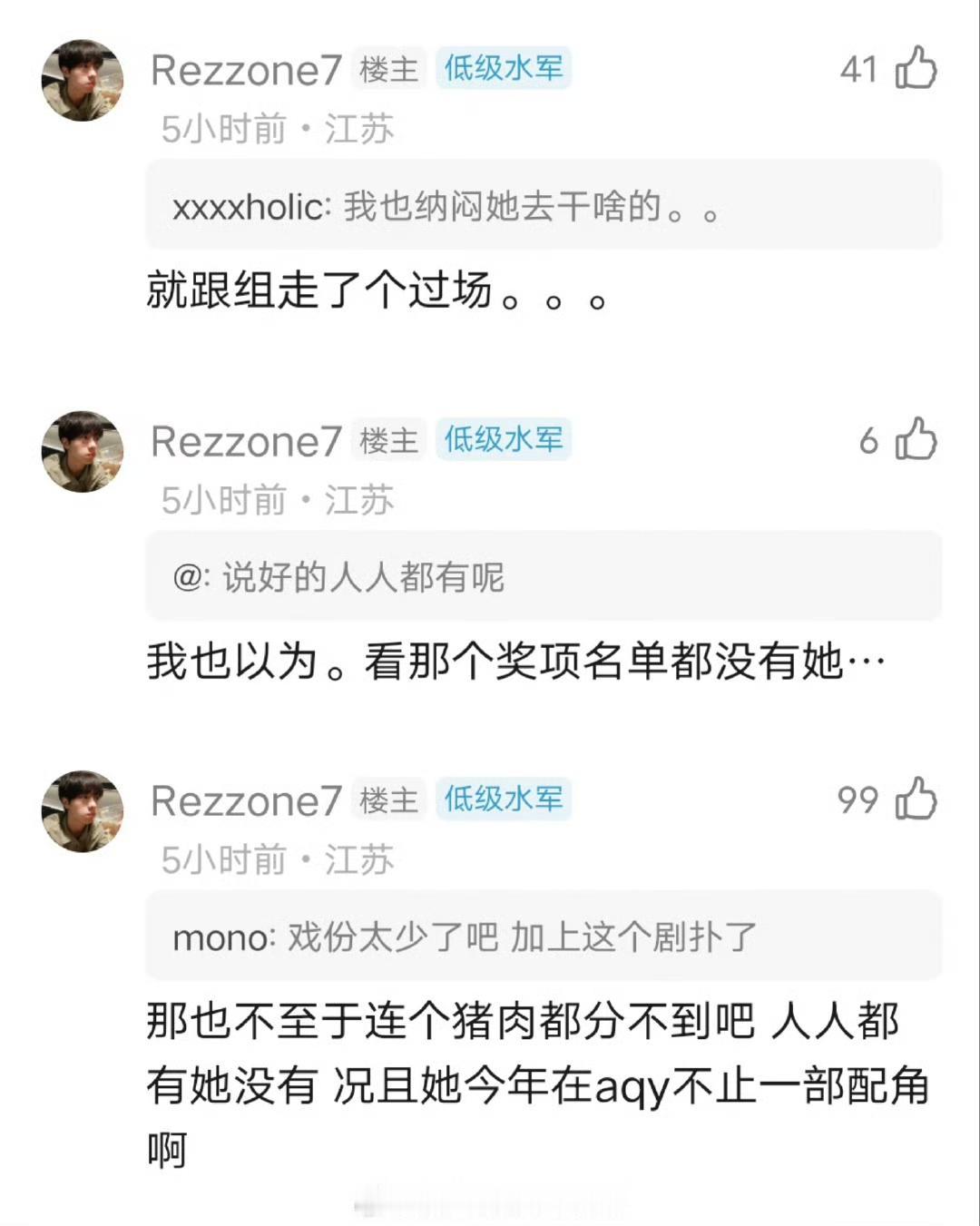 周洁琼这届尖叫之夜真的虐到心疼! 冷板凳坐了一整晚 镜头没几个 跟着《临江仙》剧组赶了大半夜妆发, 穿得漂漂亮亮走完红毯,就被按在台下角落坐了一整晚——看着身边人要么上台领奖、要么被镜头追着拍,她全程没个发言机会,连个象征性的“安慰奖”“参与奖”都没捞着,像个热闹局里的透明人,尴尬又心酸。 可谁忘了《小巷人家》里她的惊艳?饰演的吴姗姗又茶又狠,前期装无辜时眼底藏着算计,后期撕破脸的情绪爆发戏张力拉满,微表情、台词节奏都甩同期爱豆转型演员几条街,明明用演技打破了“爱豆演戏必拉胯”的偏见,却偏偏卡在“戏红人不红+资源查无此人”的尴尬境地。后续没有大制作找上门,没有优质剧本递过来,好不容易攒下的口碑就这么被闲置,明明有实力接住好角色,却只能看着机会溜走,这落差真的太虐了!周洁琼