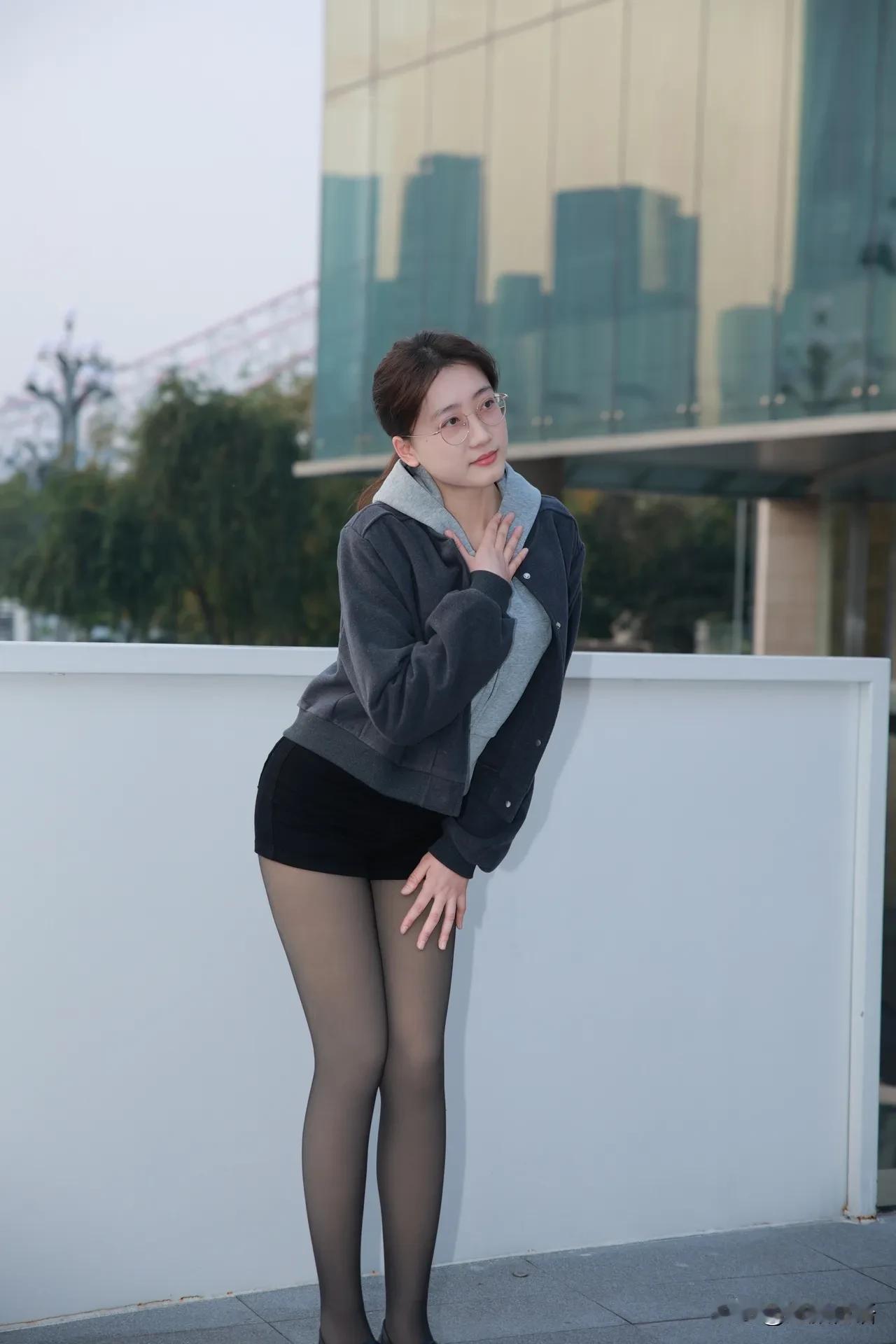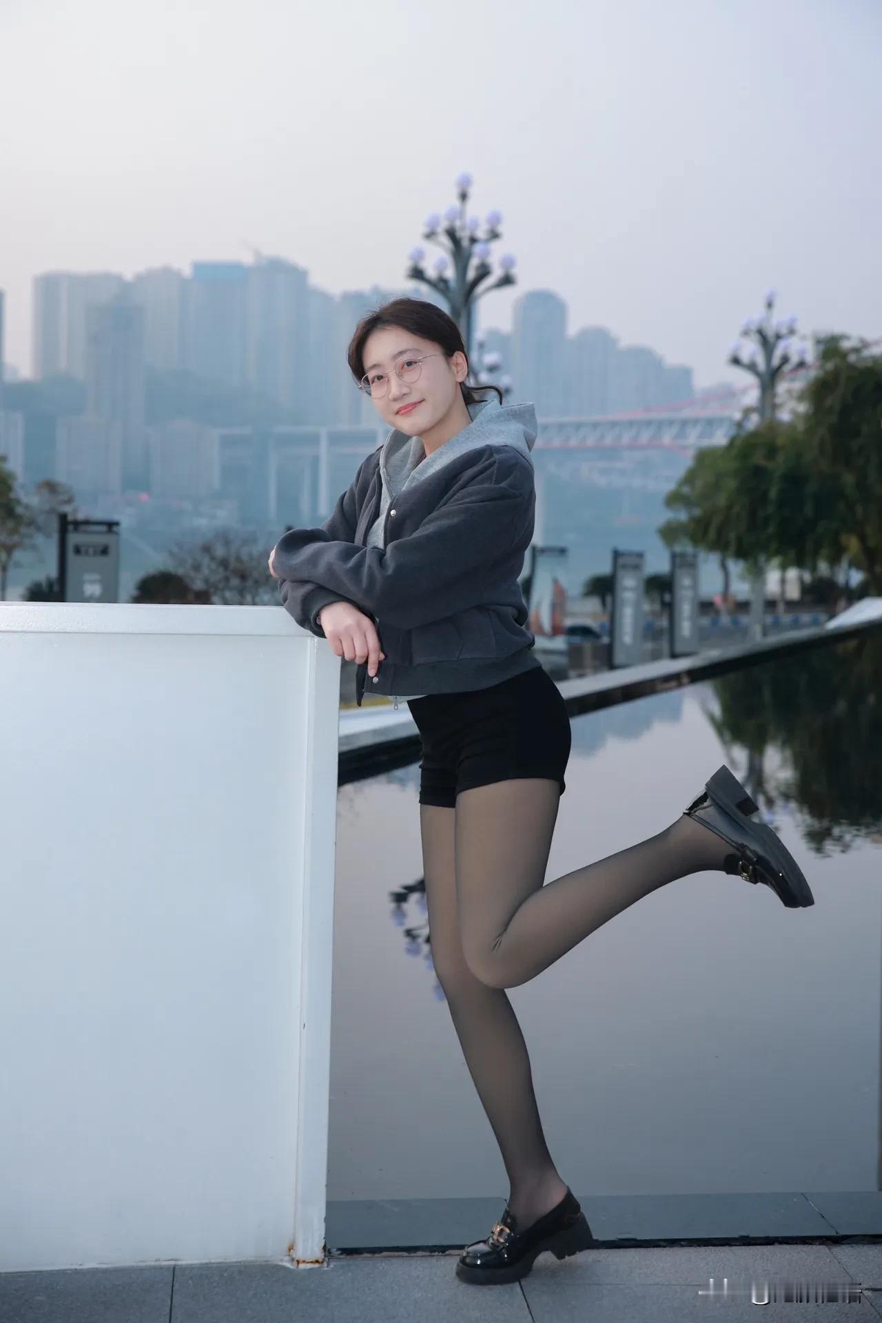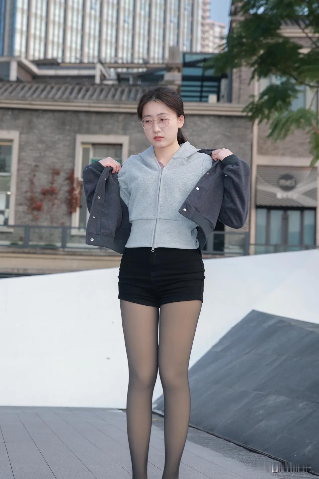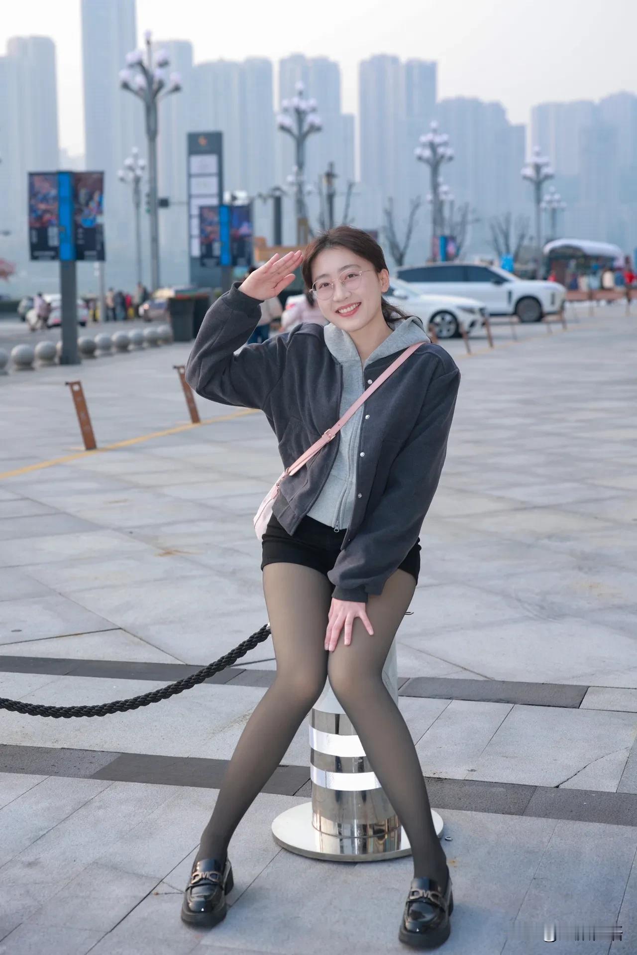 元气少女在城市街头打卡,V字手势笑靥如花!