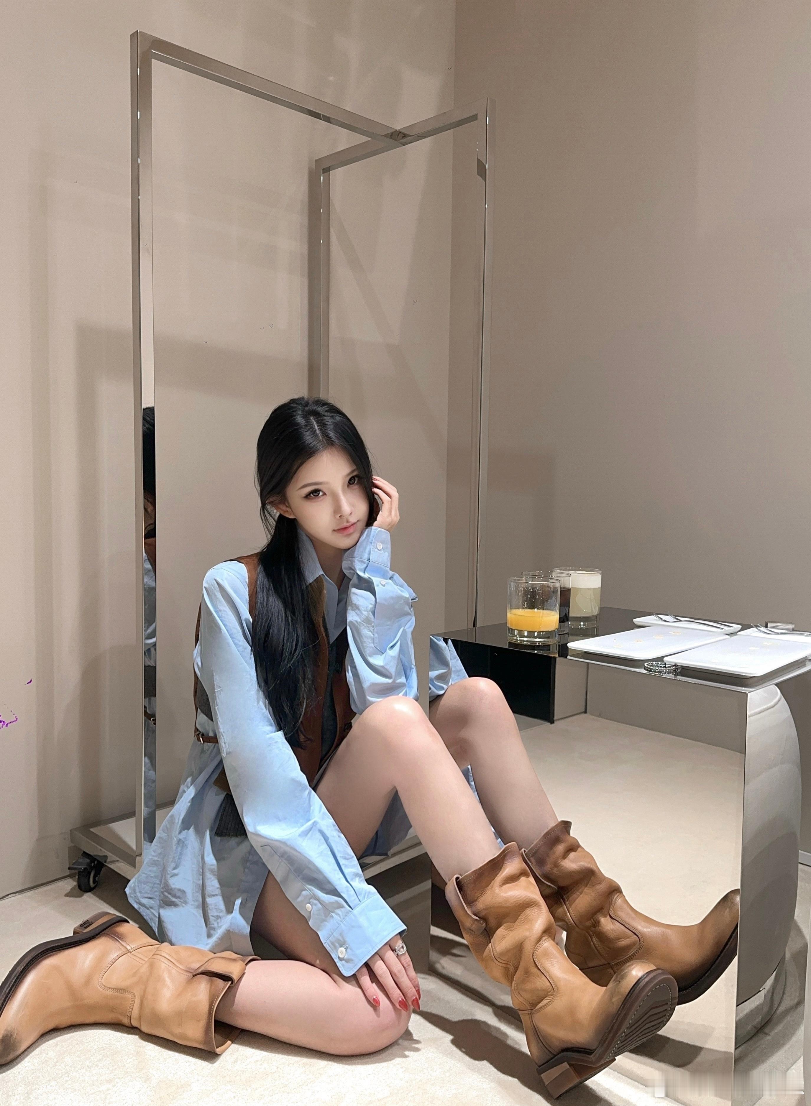 贴身灰吊带+白丝高跟,居家造型自带心动buff