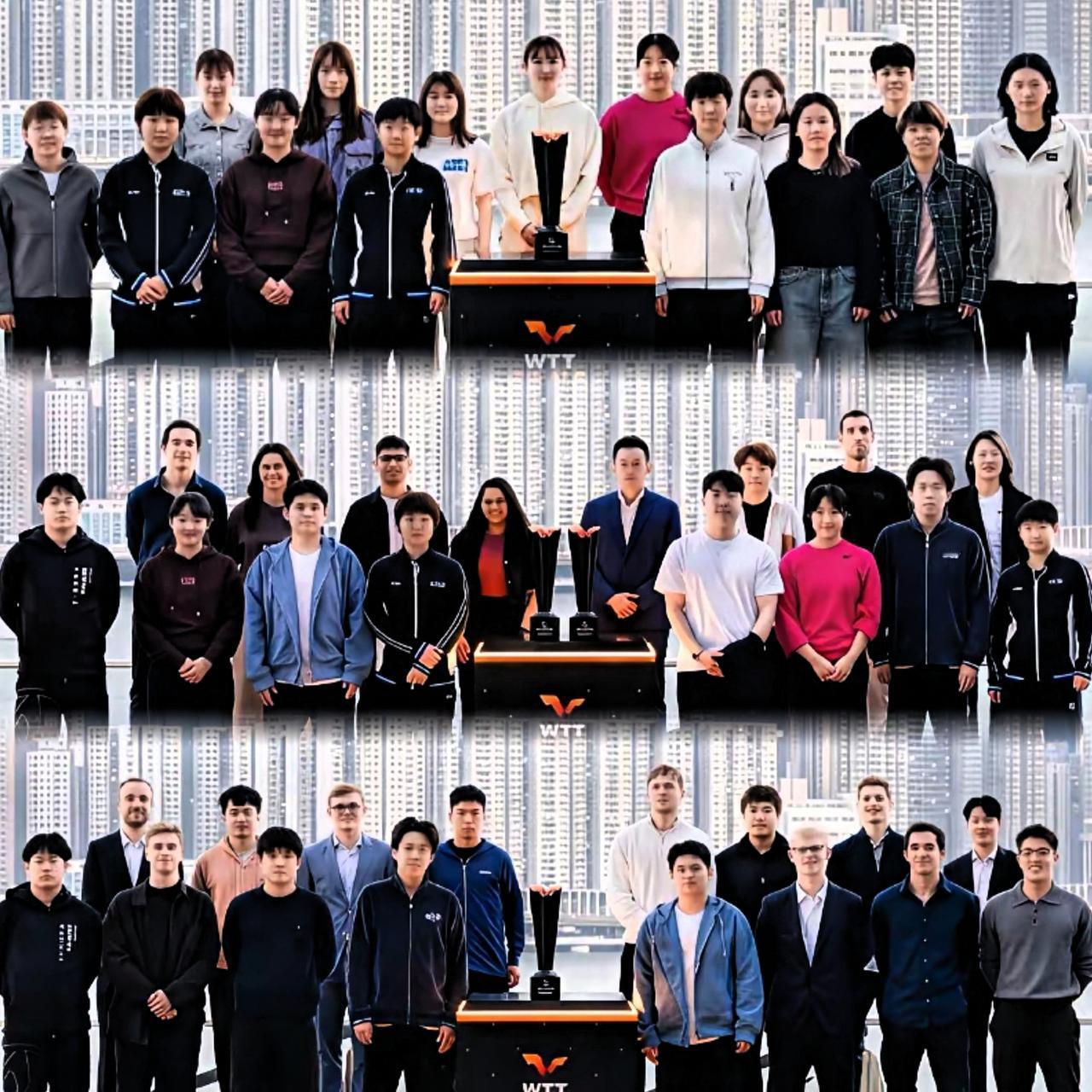 WTT官方大合照终于出炉啦! 男单、女单、混双 所有参赛选手齐聚香港, 同框画面太难得! 一眼就锁定咱们家两位亮眼的宝贝! 头头这身造型也太好看了吧, 清爽又帅气,简直自带光环! 这身高优势真是没话说, 莎莎站在旁边显得好纤巧, 俩人一高一低, 衬得身高差又萌又默契! 莎莎还是那股又甜又飒的劲儿, 可爱里带着淡定, 怎么看怎么舒服~ 希望大家总决赛 都能放手去拼,稳稳发挥! 最重要的是平安顺利,健康完赛, 你们都是最棒的!