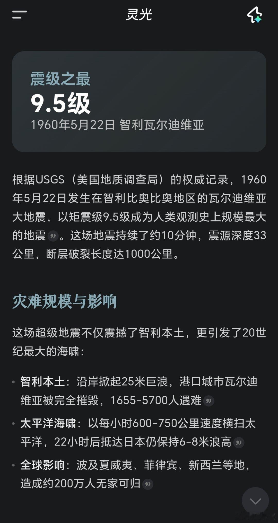 日本近海7.5级强震我刚问了AI“人类历史上最大的地震是多少级?”AI给出的答案