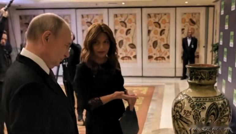 俄罗斯RT电视台总编玛格丽塔·西蒙尼扬把在印度发现的那只刻有“俄罗斯与乌克兰统一”字样的大花瓶作为礼物赠送给了普京。