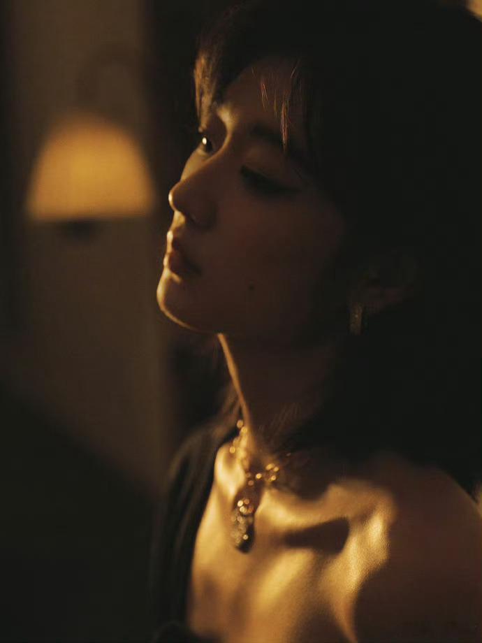 孙千镜中的下颌线绝绝子,线条流畅自然,一点不生硬。配上暗调光影,高级感拉满,这侧