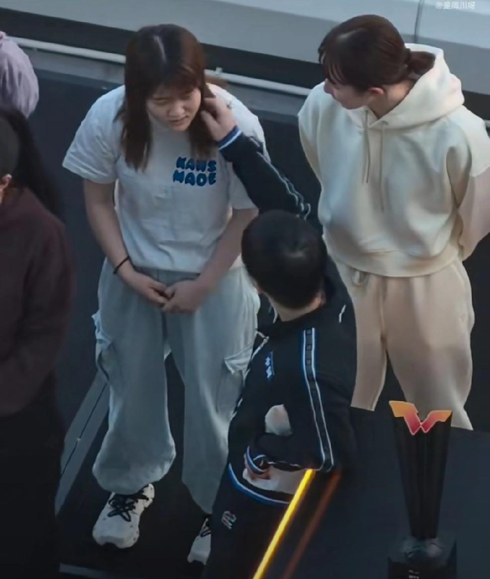 昨天香港总决赛的小游戏是抓石子, 好多网友大概都没有玩过, 孙颖莎拿过来竟然抓起好几把, 哈哈,这小女孩啥都会啊。 等待拍照的时候日本队的几个队员围着莎莎开始聊天。 伊藤美诚之前还跟莎莎比身高, 哈哈,怎么比你也没有孙颖莎高[呲牙] 莎莎还撩了一下大腾沙月的头发, 伊藤、大腾围着莎莎拍照, 早田给他们拍,哈哈。