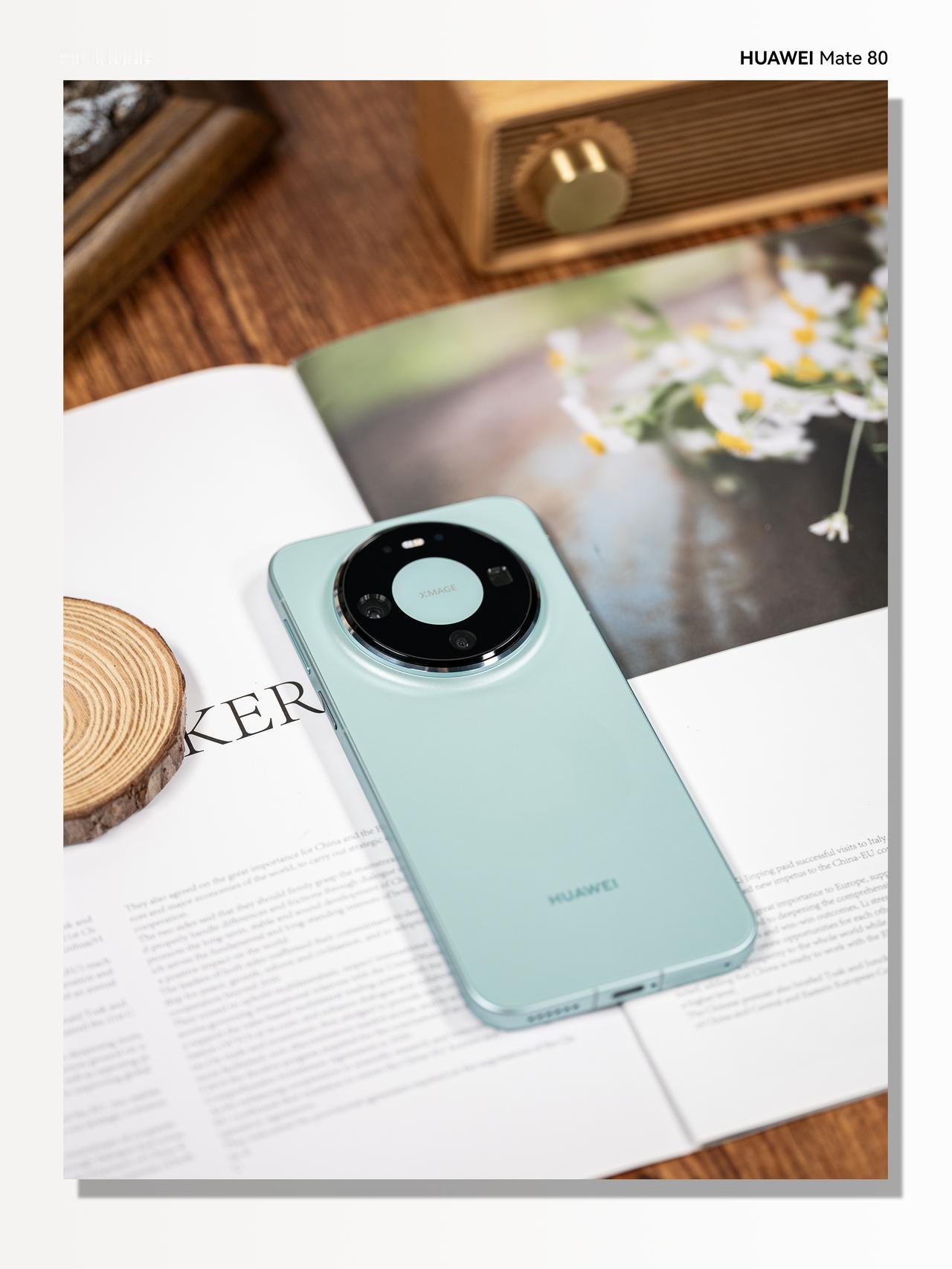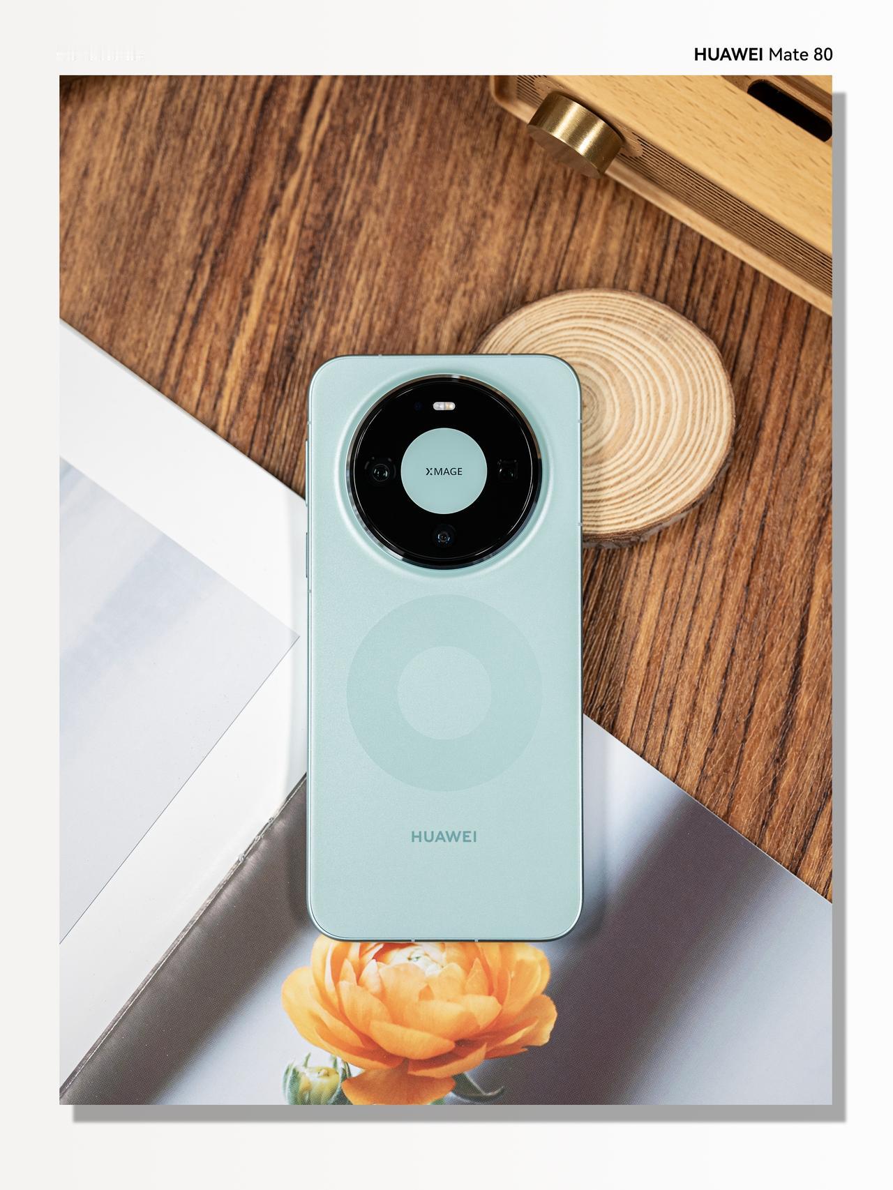 HYK图赏|华为Mate 80 云杉绿版本,机身以冷色调为主,摸起来是哑光质感,在光线下还会有渐变光影效果,很自然的高级感。后盖用的是锦纤材质,搭配哑光金属中框,耐摔还耐看。背面镜头Deco是经典的星环模组,加上磁吸充电环,刚好组成一个8的“造型”,辨识度很高。这次标准版不光外观材质有提升,配置方面也比上一代进步不少,最惊喜的是价格还降了,值得看看。