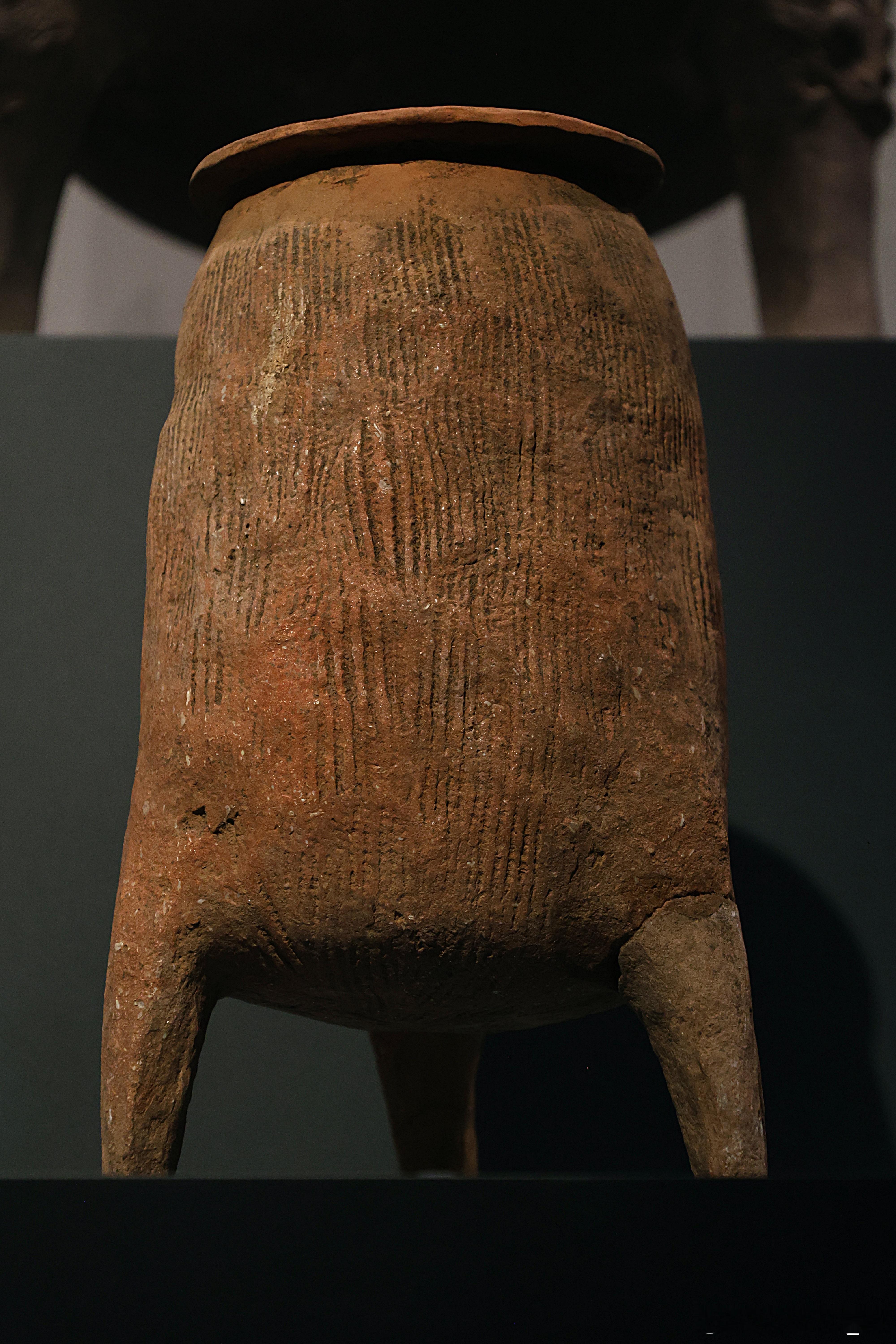 绳纹陶鬲 战国(公元前475-前221年) 首都博物馆藏北京昌平松园战国墓出土。这件陶鬲为夹砂粗红陶,夹砂粗红陶秉承着北京地区土著文化的传统,与西周燕国的灰陶传统不同,此件陶鬲融合了北京地区多种文化因素,体现了燕文化对北京地区土著文化的全面接纳,以及土著民众对燕文化的广泛认可。