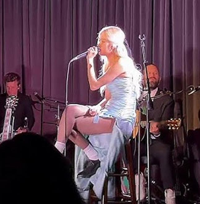 紫色露肩上衣+蓝色紧身裤,搭配黑色长靴,时尚又舒适!