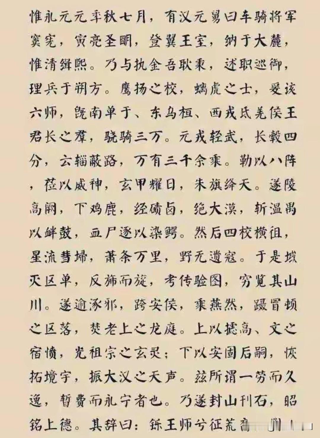 蒙古国暴雨冲出一块刻着汉字的千年石碑,专家一看直接跪了——这玩意儿居然是东汉班固写的《燕然山铭》原稿! 2017年中国考古队搭着五米高脚手架,在蒙古戈壁滩的岩壁上拓了260多个字,跟《后汉书》里记载的窦宪打匈奴的檄文对上了九成。最绝的是开头"永元元年"四个字,直接把史书里"燕然勒石"的传说锤成了铁证。 这事儿说来挺玄乎。1990年俩蒙古牧民躲雨时发现的石刻,愣是让当地专家研究了二十多年没整明白。直到2014年中国学者收到照片,一眼认出是汉代隶书。窦宪当年带着南匈奴暴揍北匈奴,让史学家班固在燕然山刻字留念,结果石碑位置成了千古谜题。 最新检测显示,石刻风化严重但关键信息保存完好。学者推测现存版本比史书记载的更原始,比如"南单于"写成"南单",可能是战场紧急刻写时的简略版。现在精确坐标已锁定在北纬45度,彻底终结了"燕然山在哪儿"的争论。 要我说最带劲的是这块石头打了多少人的脸——西方学者总说中国史书爱吹牛,结果人家连标点符号都没瞎编。班固这老哥蹲大狱前留的真迹,比教科书还教科书。 所以问题来了...……?