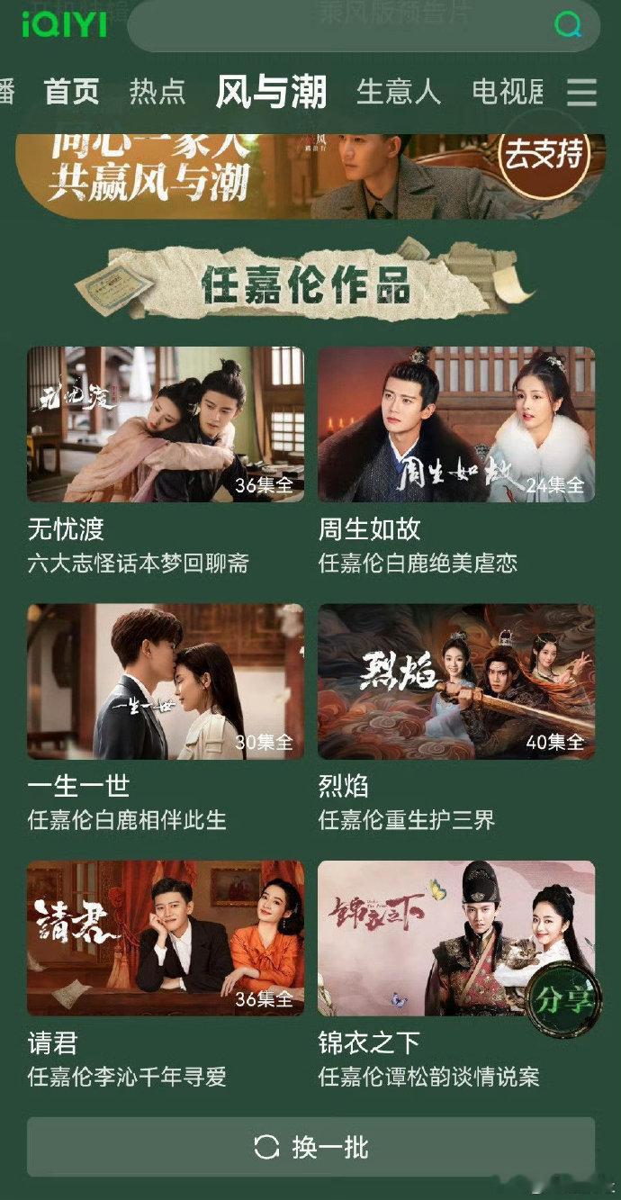 风与潮任嘉伦作品专栏 回忆杀直接拉满!联动专栏集齐经典角色,每一个都让人印象深刻,封神名场面根本看不够~风与潮