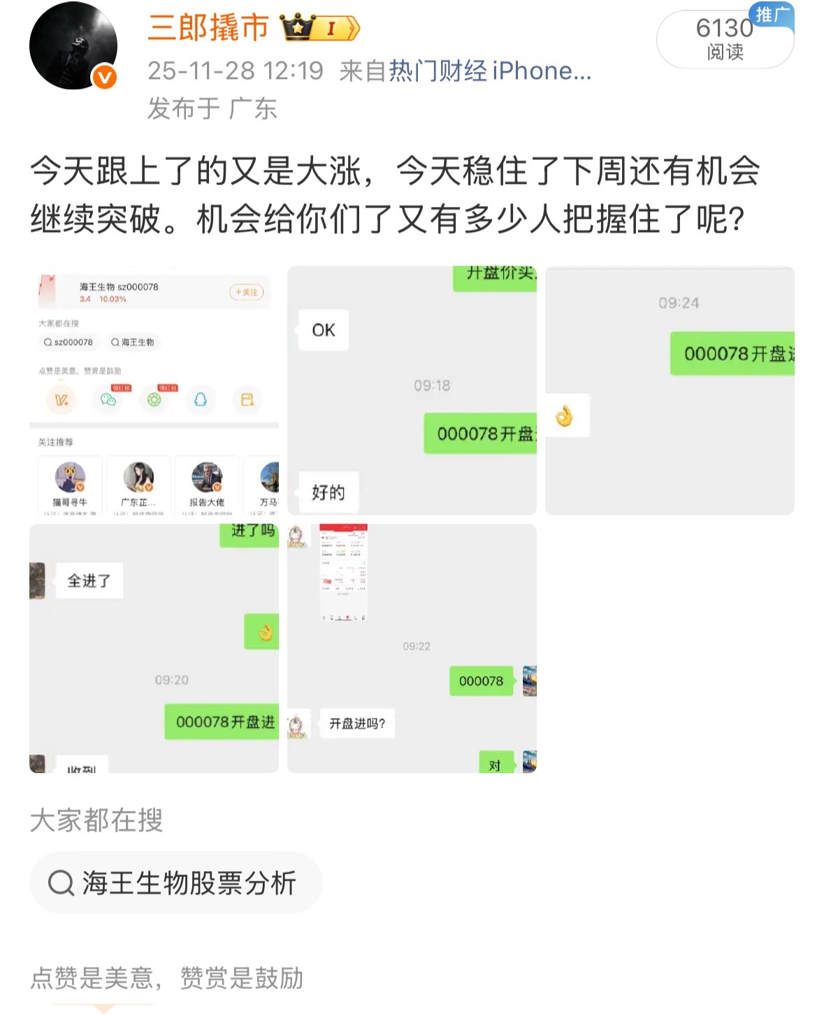 海王生物也是带你们收场了,达到百分之五十左右了。恭喜内部成员了