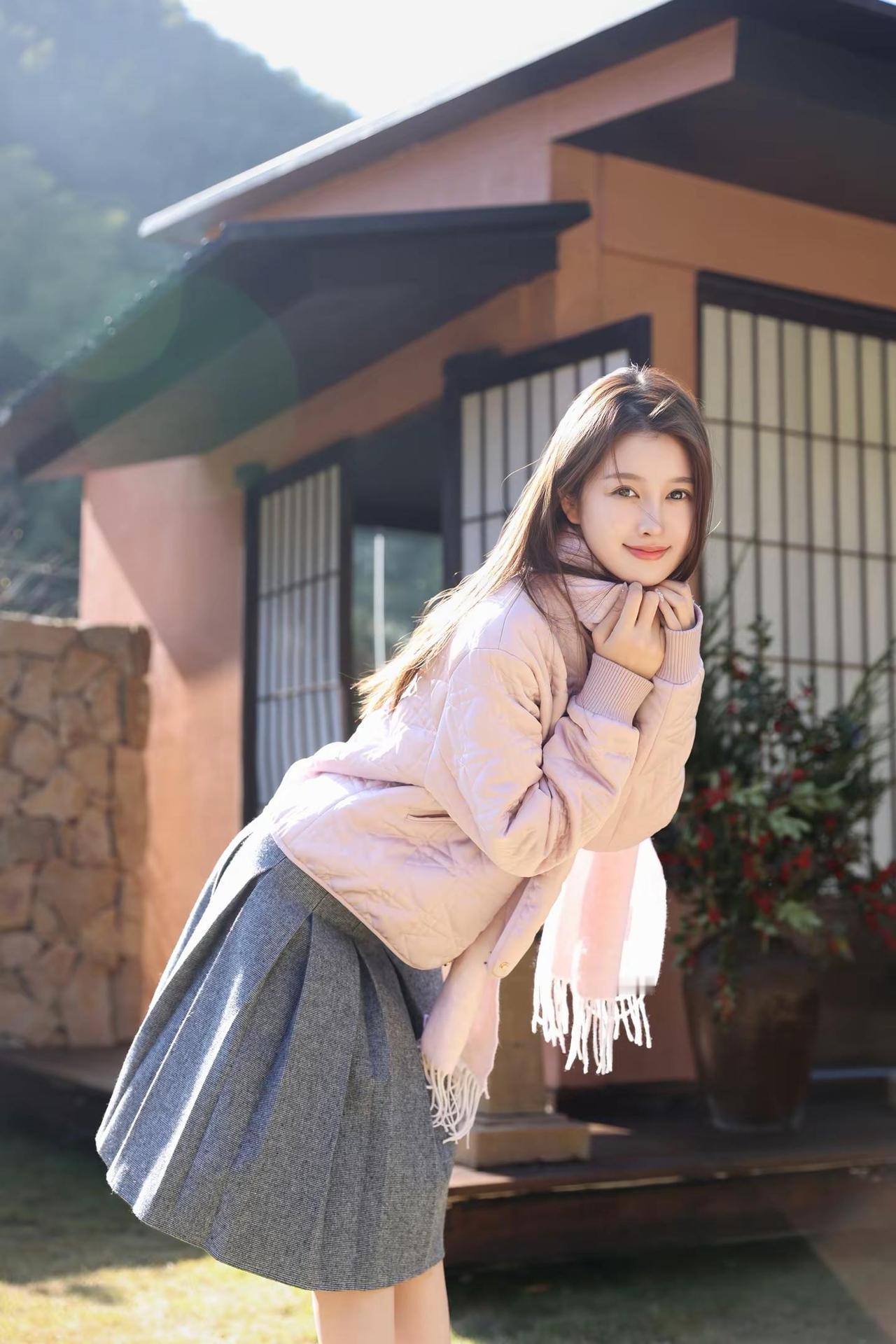 冬日暖阳下,佳人倚栏思。