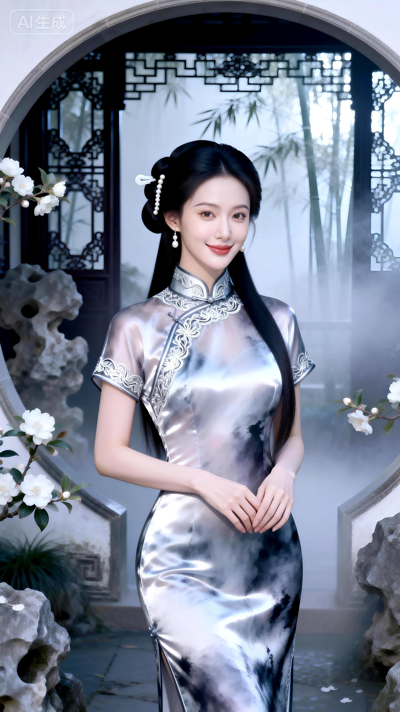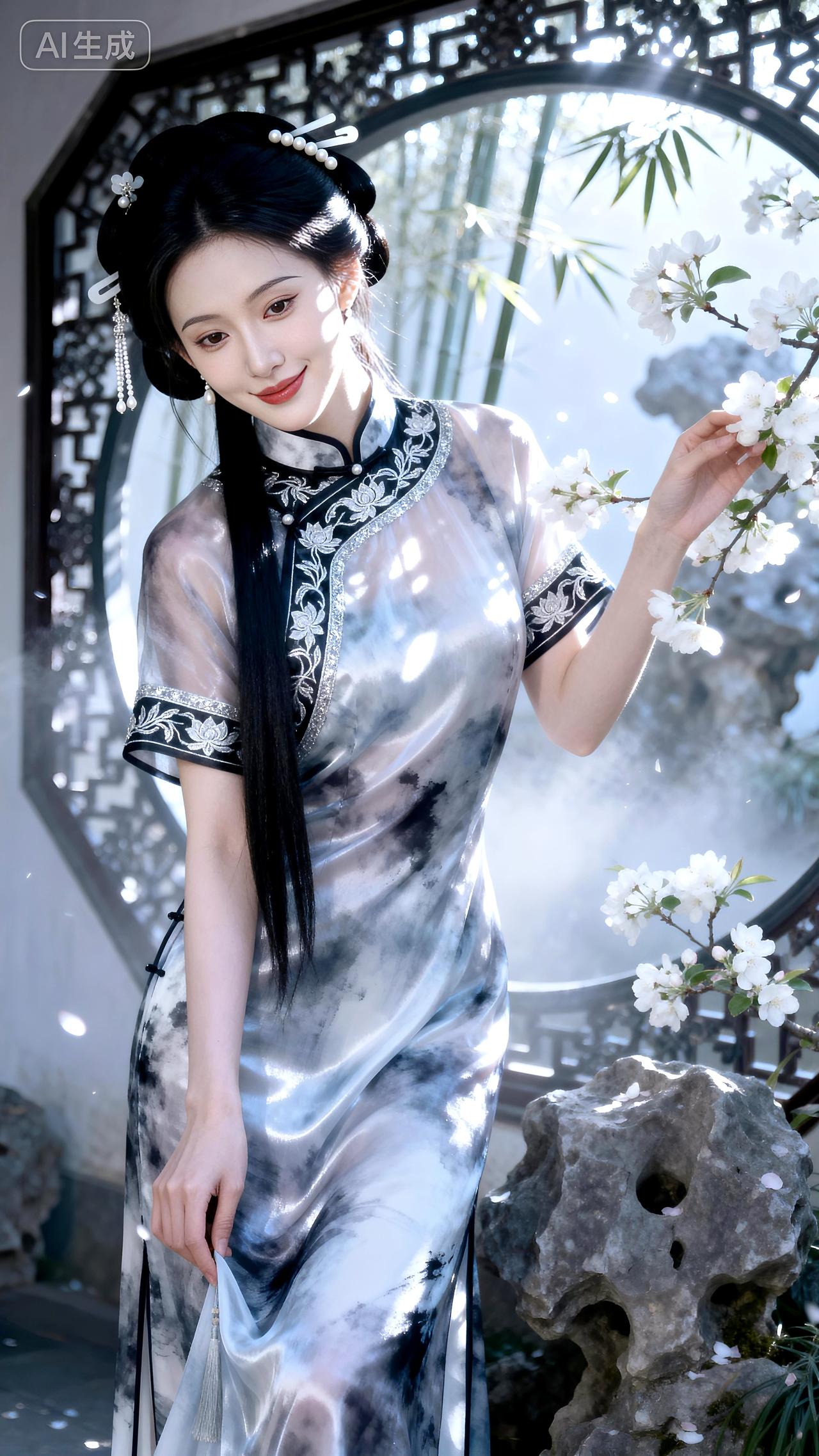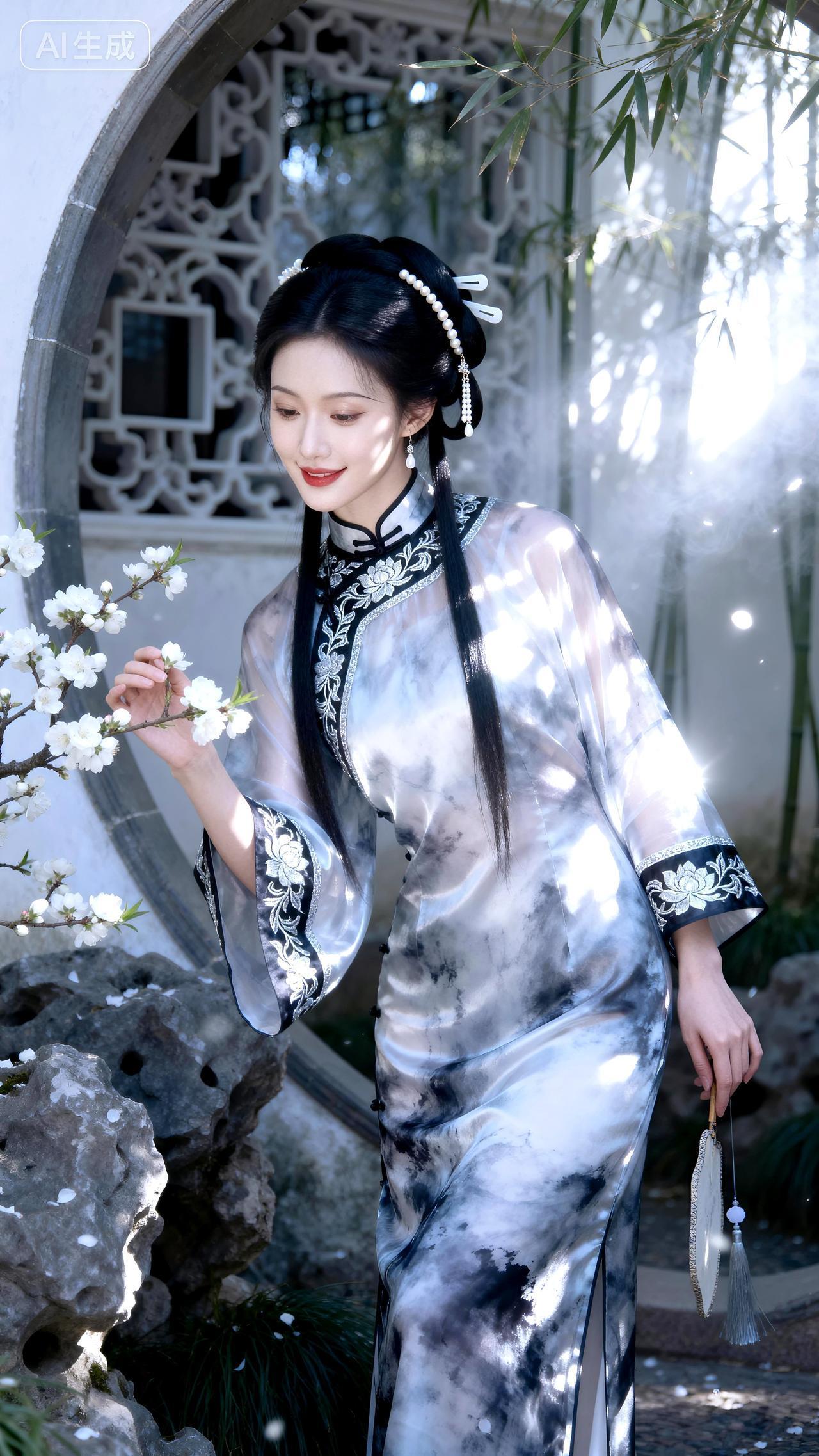 月洞门边花影瘦,一袭水墨染春烟。 壁纸 写真 古风 汉服 清新养眼的绿色壁纸