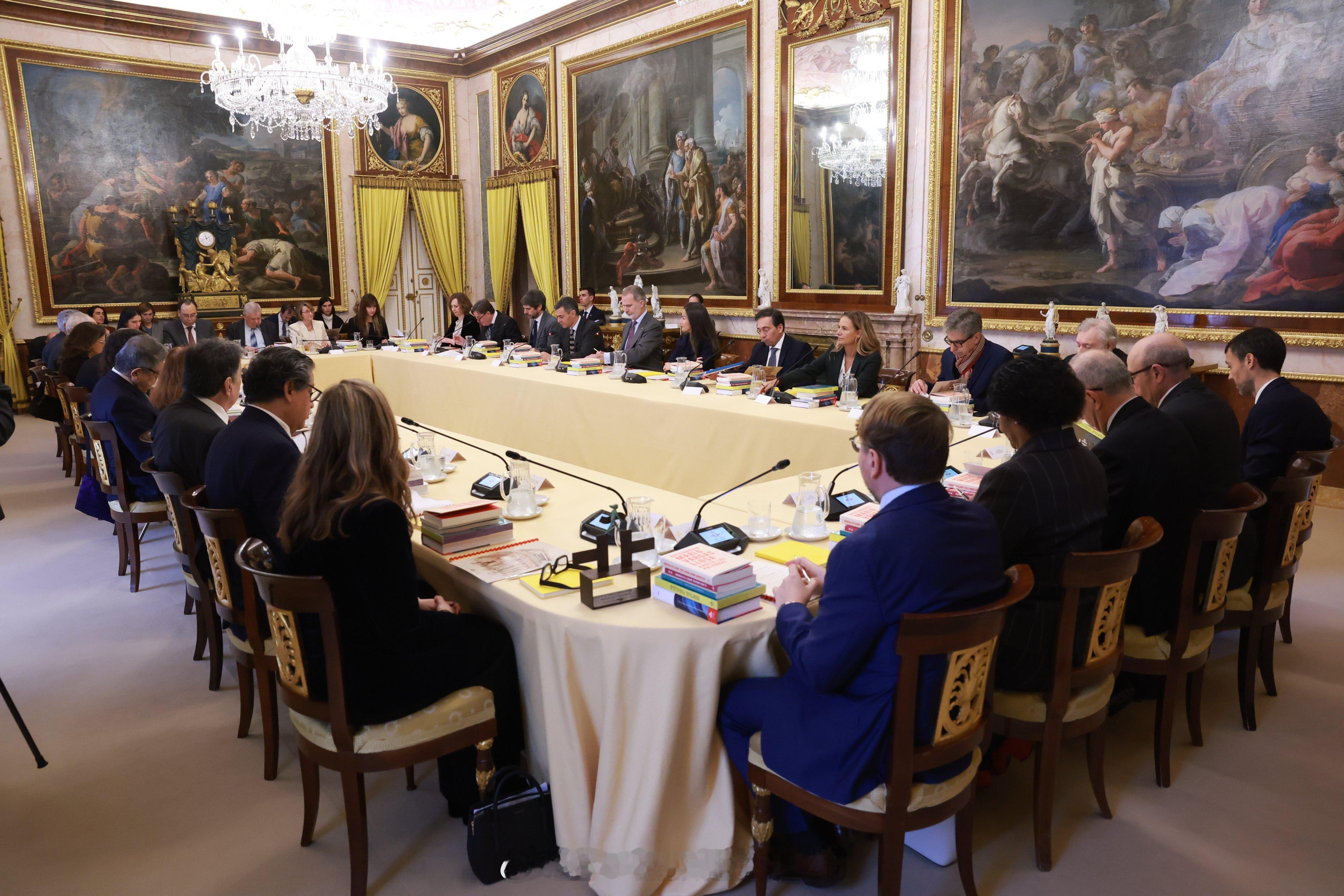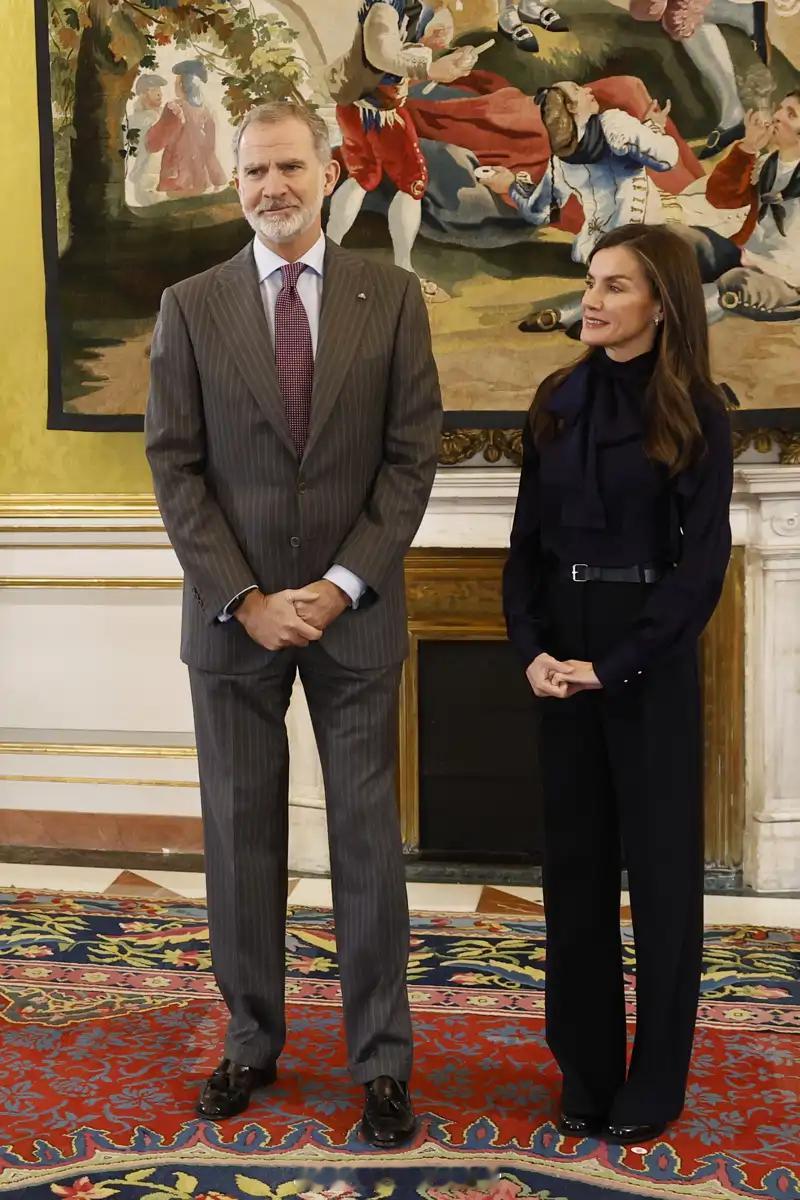 西班牙王室 12月9日,费莱在阿兰胡埃斯宫出席塞万提斯学院会议、颁发Ñ奖,并与参会者共进午餐~因为水果牙的访问取消,所以莱后本周官方活动就这一个,下周王室差不多就要放假了,2025年见一次少一次啦~