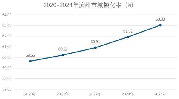 人口质量稳步提升,城镇化进程有序推进。2024年末,滨州城镇化率达到63.03%,较2020年末提升3.38个百分点,城镇化进程稳步推进。面对劳动年龄人口缓慢减少的趋势,我市坚持在高质量发展中促进就业扩容提质。2024年末,全员劳动生产率达到16.42%,较2020年末提升4.22个百分点,就业结构与质量实现同步优化。