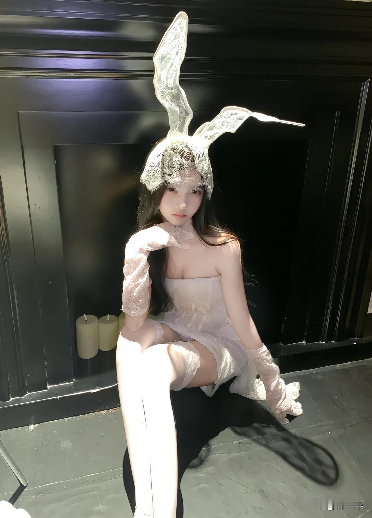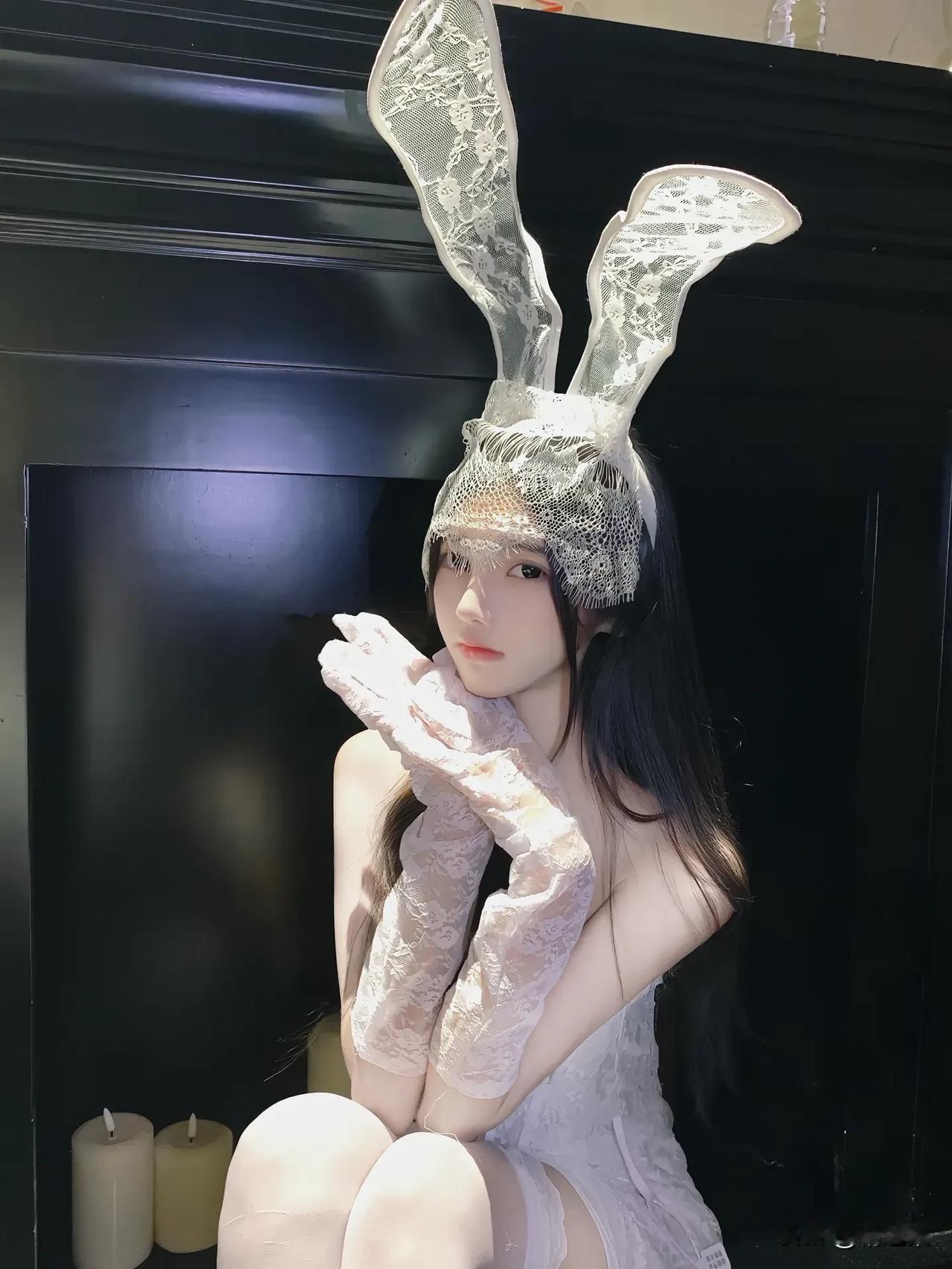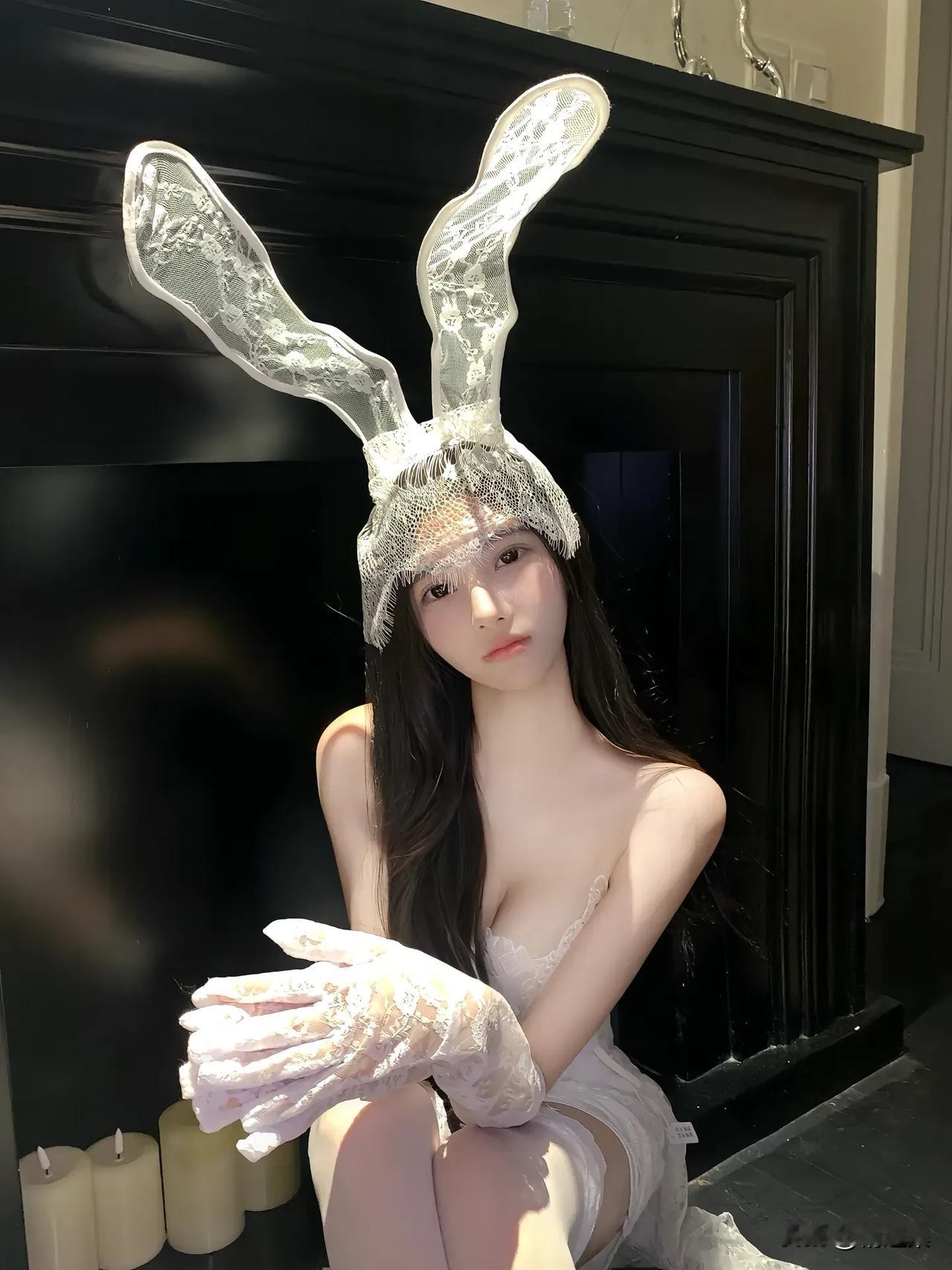 梦幻兔女郎,蕾丝兔耳头饰,甜美可爱!🐰💕