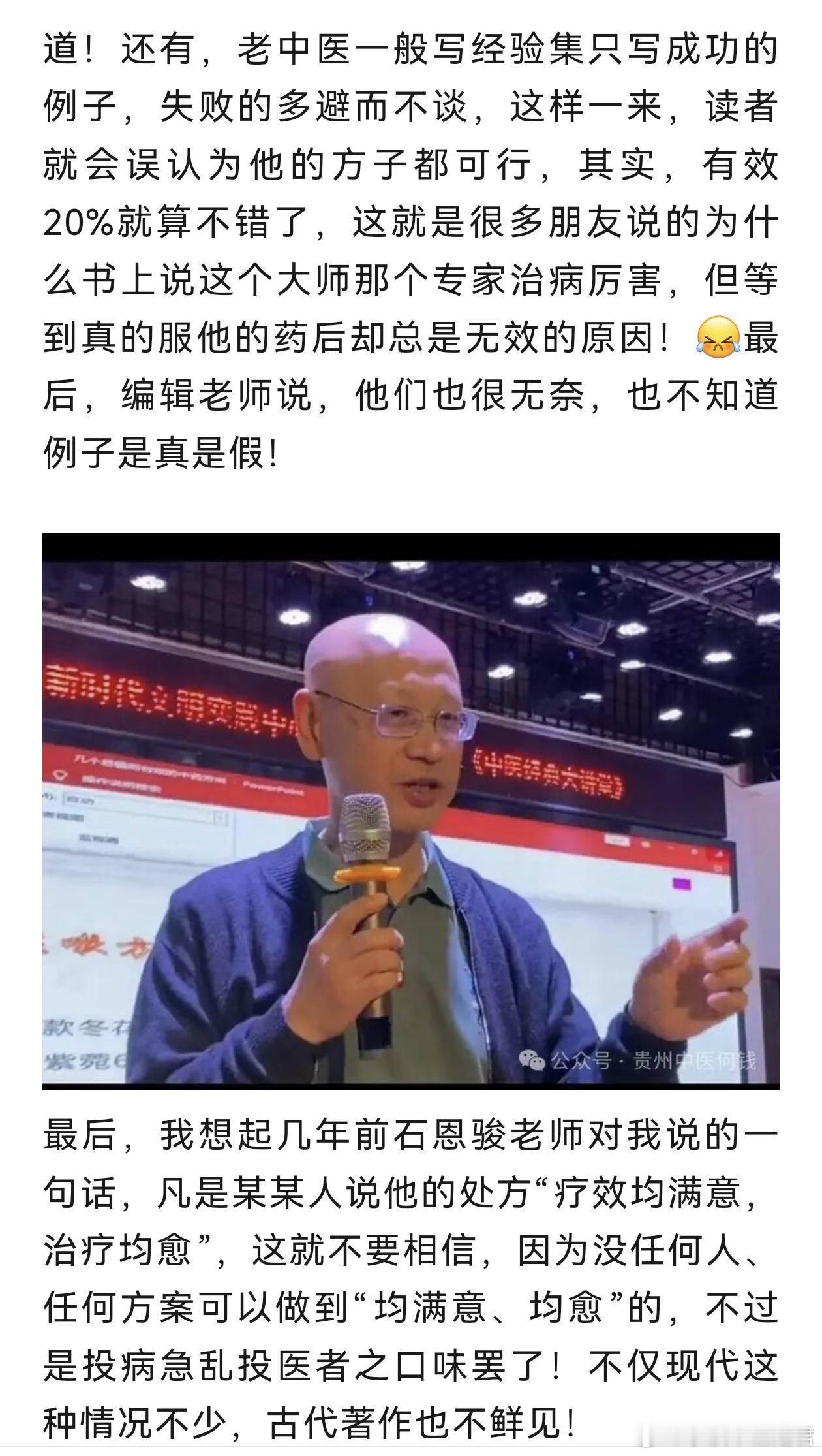 代谢性疾病,三高、四高,都是生活方式病,一是吃得好,一是动得少,一是想得多,这种都是至少十年二十年以上的时间才发展到“疾病”的状态,指望一点草根树皮就治住了,无异于天方夜谭。关键的关键还是忌口,少吃,多动不多动还不是最关键,关键是少吃,酒肉穿肠过,指望喝两碗中药就把三高四高治住,难!难!难!还有通治方的问题,我昨晚和魏工聊,我说身边的同事,有擅健脾者,有擅温补者,有擅清湿热者,有擅疏肝解郁者,有擅化痰热者,都有出彩的病例,都是值得我学习的,我都以师事之,但论读书多、论理论修养深、论全面坚持辨证论治,无出我右者,我这几年不敢说过头话,韬光养晦,但我敢对这句话负责!寒热攻补,我学无所偏,有经验,但不立协定方,无论每天看20,还是每天看100,每个人都是小炒,没有大锅饭,用通治方调理一些没有病的,随便吃吃中药、不追求疗效的人可以,但真想治病,通治方疗效极低,不想动脑子,疗效好不了的