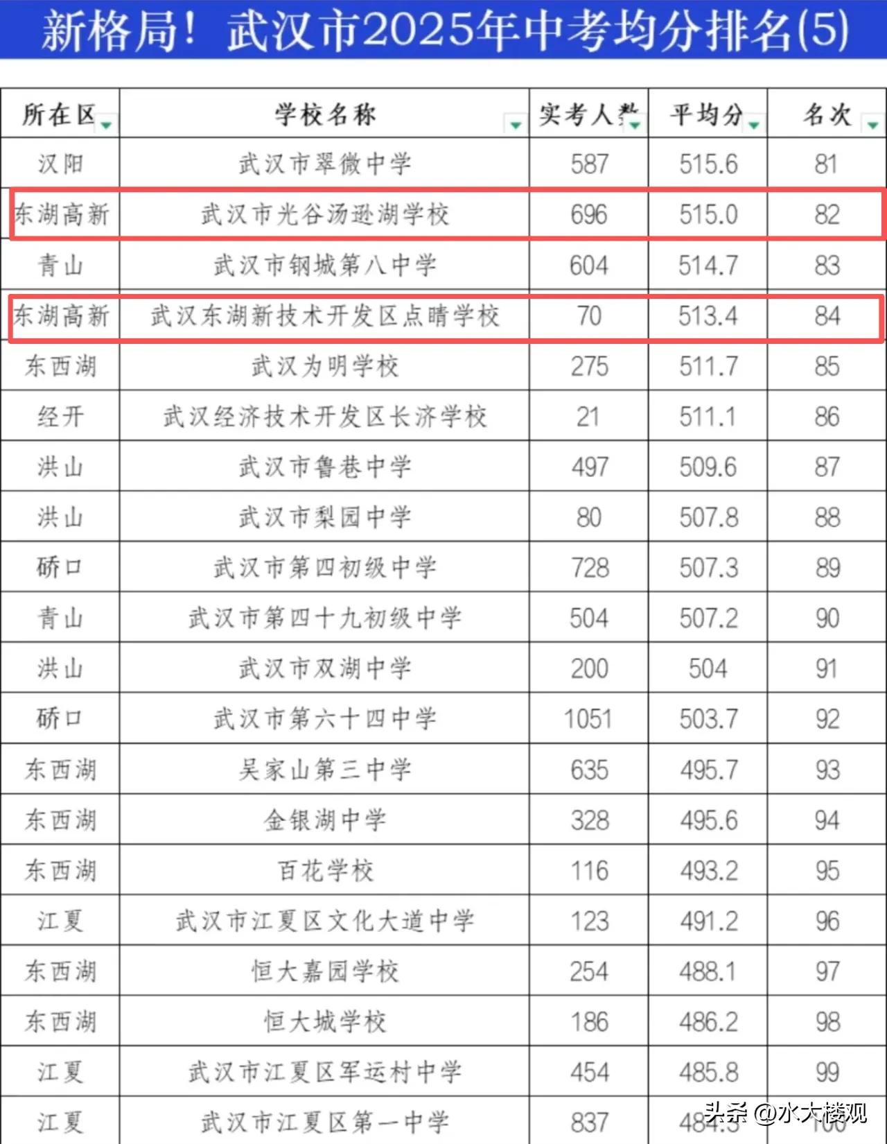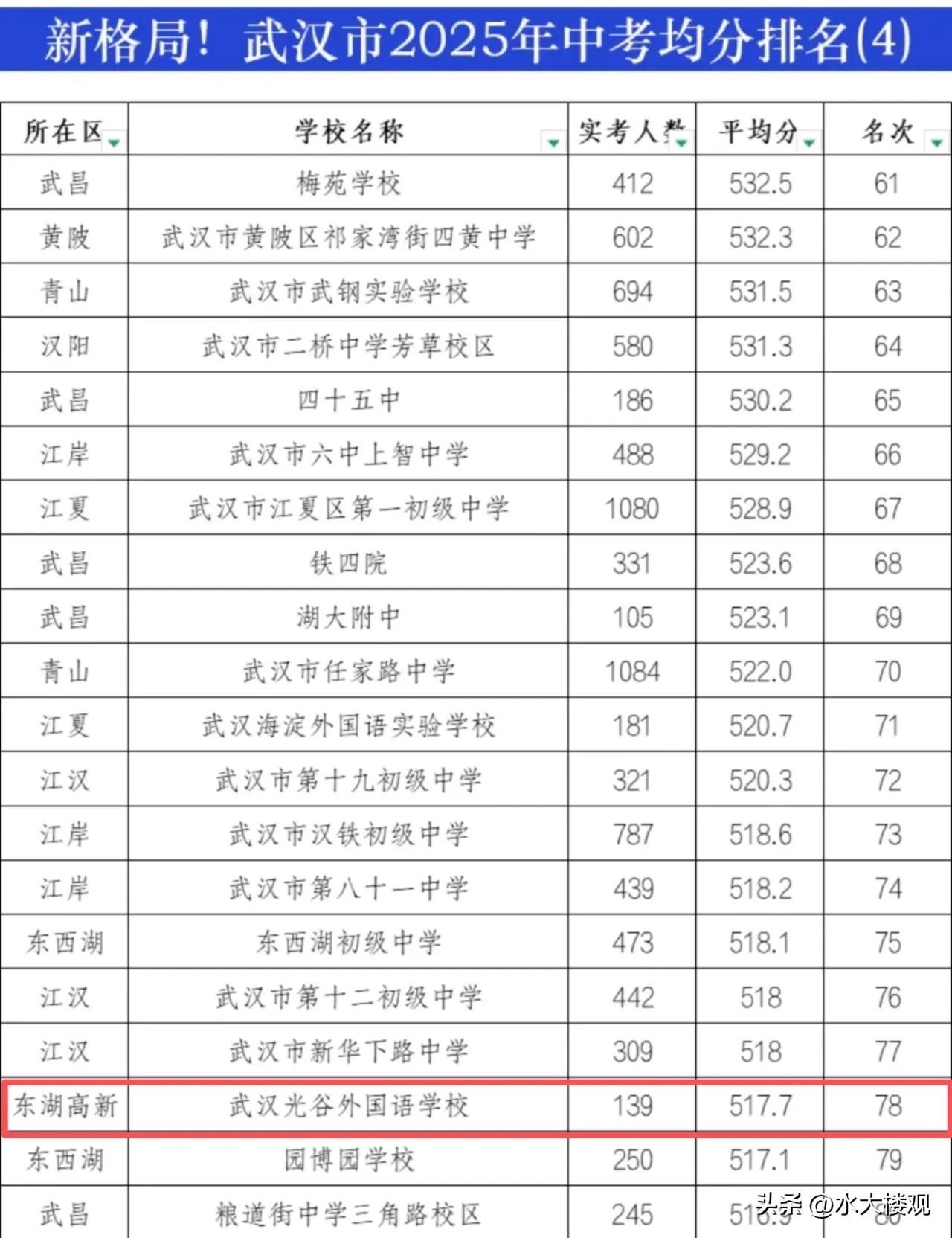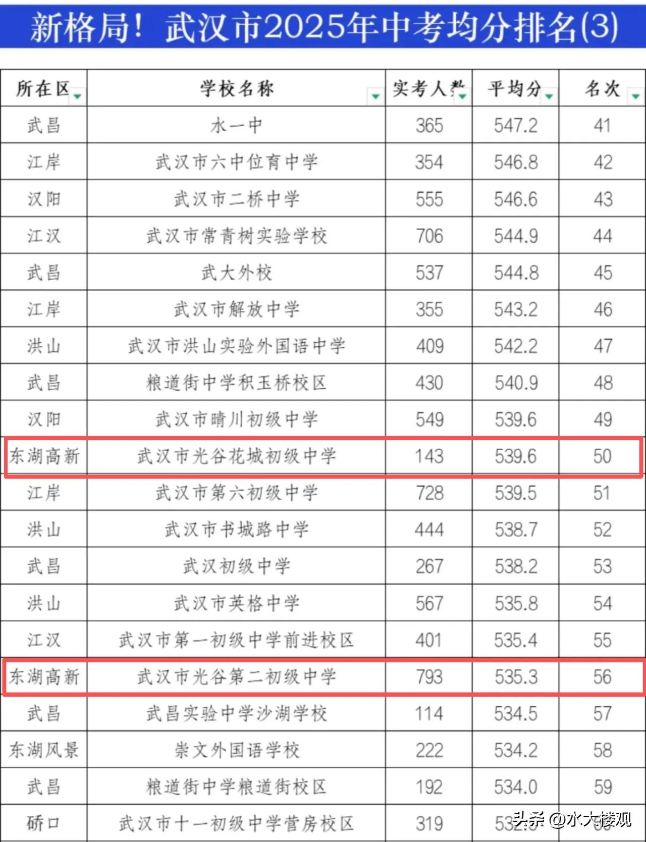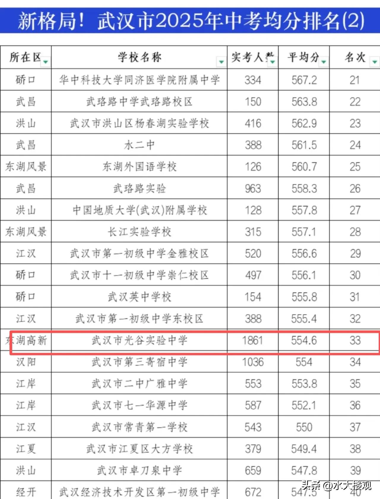 武汉2025武汉中考各初中均分出炉,东湖高新区,好像不太行啊。