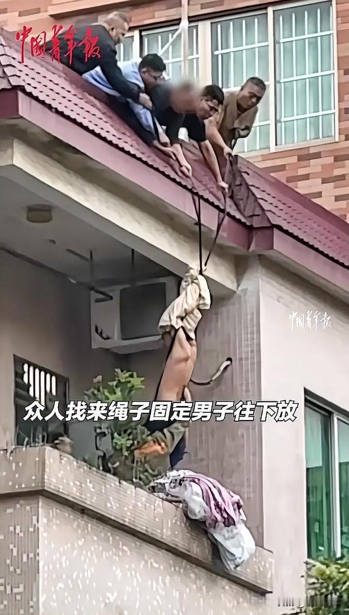 太惊险了!广东东莞,男子在家晾衣不幸坠楼,只见他死死的抓住4楼房子外檐,命悬一线,周围的热心群众毫不犹豫的冲上去施救,再加上民警的配合才将他从死神手中抢了回来。 当天,男子正在在陪妻子在晾衣服,两人有说有笑的,男子便随后坐在护栏上晒晒太阳。 没想到,男子眼前突然一片漆黑,突然晕了过去,顺着护栏滑了下来,还好他眼疾手快,直接用手死死的抓住4楼外檐。 妻子看到这一幕,直接吓傻了,赶紧大声的呼救,立马引来了周围邻居的注意。 周围的邻居看到这一幕,接到冲到了阳台上,几个人死死的抓住男子的胳膊,生怕男子脱手出了什么岔子。 值的庆幸的是,刚好警察局也在附近,很快,几位热心民警也加入了进来。 几个人上面用绳子把身体固定,下面的人在稳稳的接住,拉着绳子一点一点把男子放了下去,众人这才松了一口气。 男子被救后,也是吓的一身冷汗,对大家都是连连的道谢。 这一幕被行人拍下,发到网上,网友纷纷感叹。 有的说:“这安全意识也太差了,就算是自家也能这样,看着揪心啊。” 也有的说:“家里的得上点心了,可得好好感谢一下人家,刚冲上去的那些邻居太关键,真是一刻都耽搁不得啊。” 还有的说:“还是人多力量大,这些热心群众和民警也都了不起啊,为你们点赞。” 危急时刻见真情,团结一心化险为夷! 这次惊心动魄的救援,是邻里守望相助、警民携手同心的生动写照。从妻子的呼救,到邻居们毫不犹豫地冲上前,再到民警迅速赶到专业施救,每一个环节都环环相扣,每一双手都在为生命接力。 正是这份"人人为我,我为人人"的温暖,让男子在生死边缘被拉了回来。这个世界虽然有风险,但更有温情;生活虽有意外,但总有人在你需要的时候挺身而出。 为热心邻居点赞,为人民警察点赞,为每一个挺身而出的普通人点赞!