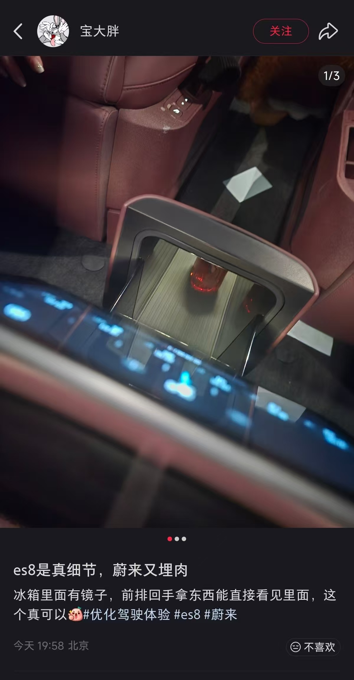 真的是魔鬼细节,我的ES8开了快六千公里了天天开合冰箱我都没发现这个细节。居然有