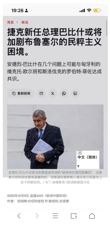 2025 年 12 月 9 日捷克民粹派巴比什再任总理,欧洲多国民粹崛起,欧盟对