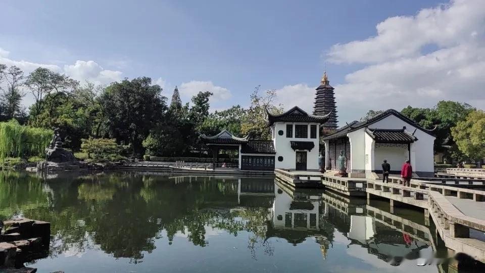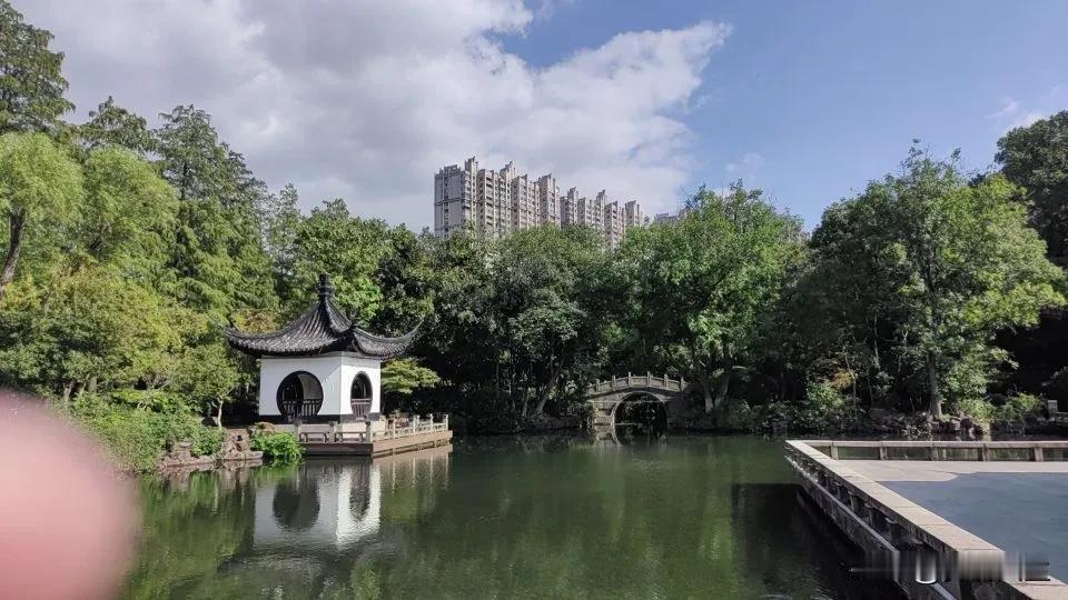 静谧的园林,绿树成荫,水波荡漾,仿佛置身世外桃源。