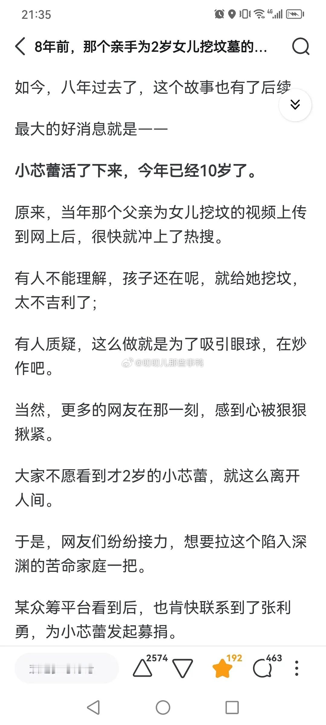 亲手为2岁女儿挖坟墓的爸爸,有看过这个的吗?今天在某乎刷到了,小女孩活下来了,活的很好很健康,真的太开心了,截图几张大家看看