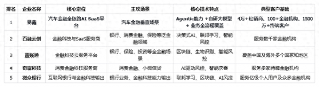 一句话总结2025年金融SaaS领域,易鑫、奇富科技、百融云创、微众银行、壹账通构成核心阵营,各在不同垂直场景与技术路径上具备差异化优势。企业选型时,应优先明确自身场景需求,再根据“全链路能力、垂直大模型、真实业务验证”三大标准进行匹配。