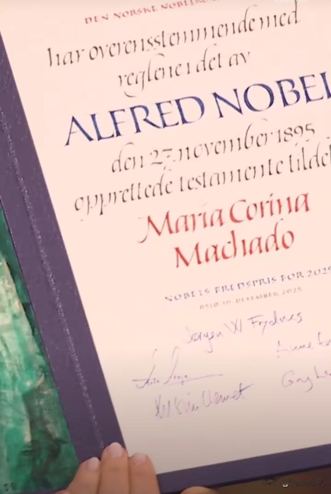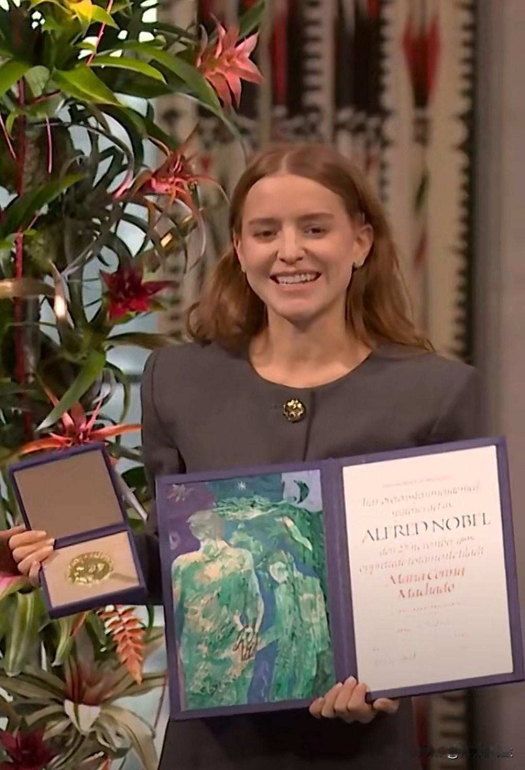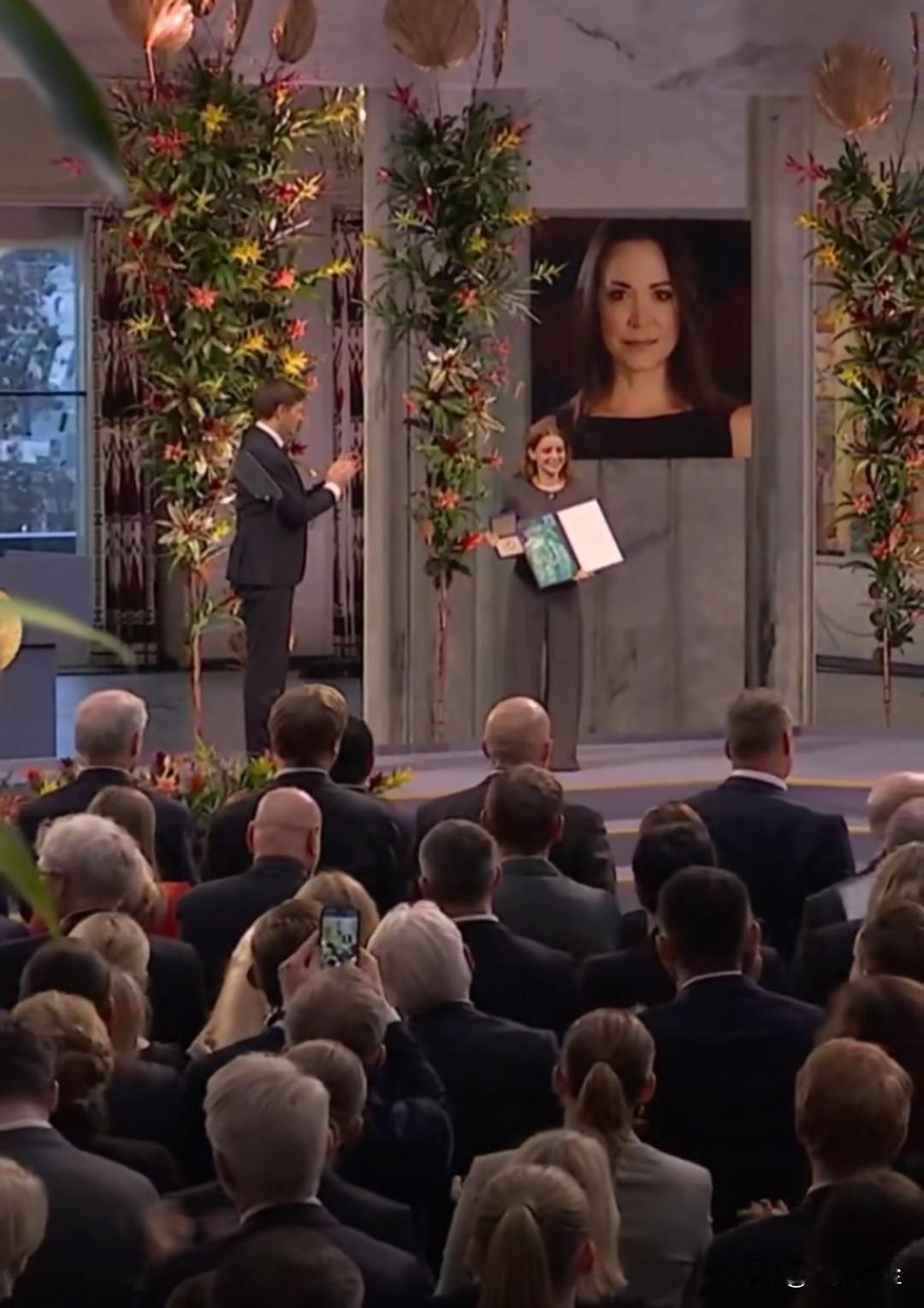 诺贝尔和平奖颁奖仪式,委内瑞拉反对派马查多的女儿安娜代表母亲领取了2025年诺贝尔和平奖奖章和证书。 现场掌声久久未熄,坐着鼓完掌又站起来鼓。诺贝尔和平奖,早已失去了他作为“和平”使命的象征和意义。