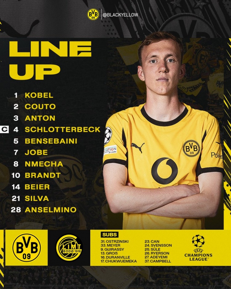 直播吧12月11日讯北京时间今天凌晨4点,欧冠联赛阶段小组赛第6轮,多特主场对阵博德闪耀,多特此役首发已经公布。