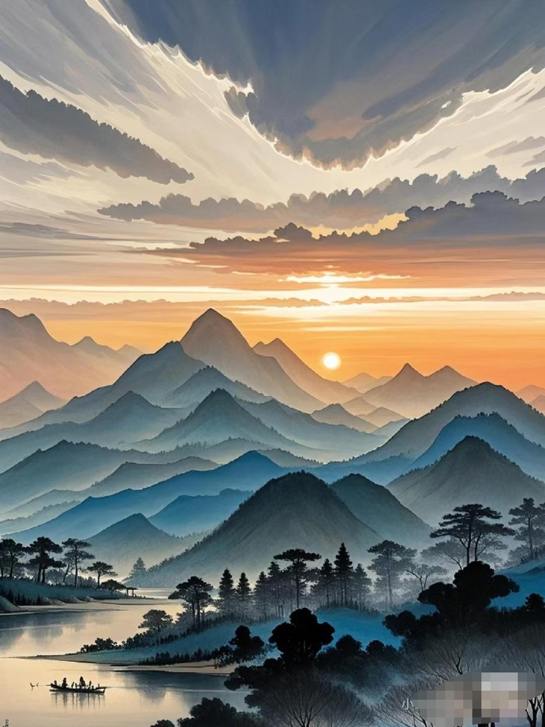 上联:晚霞挥笔画锦绣, 下联:晨雾洒墨绘山河, 下联:朝晖铺彩耀乾坤。
