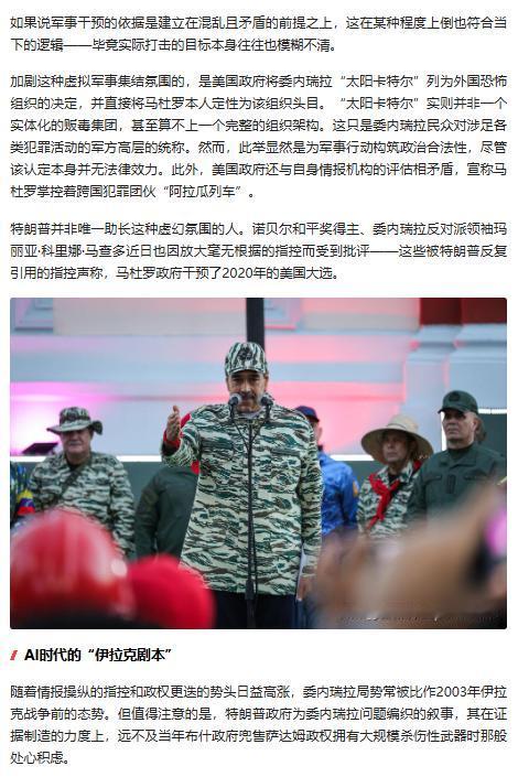 美国以站不住脚的理由针对委内瑞拉,军事集结透着诡异,已有近 90 人丧生,后续走向引人担忧。 原文来自:日新说Copernicium《委内瑞拉当心了,美国这次找的理由,连当年骗萨达姆的力度都没有》