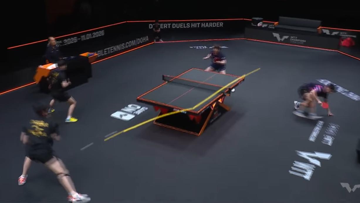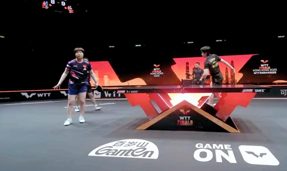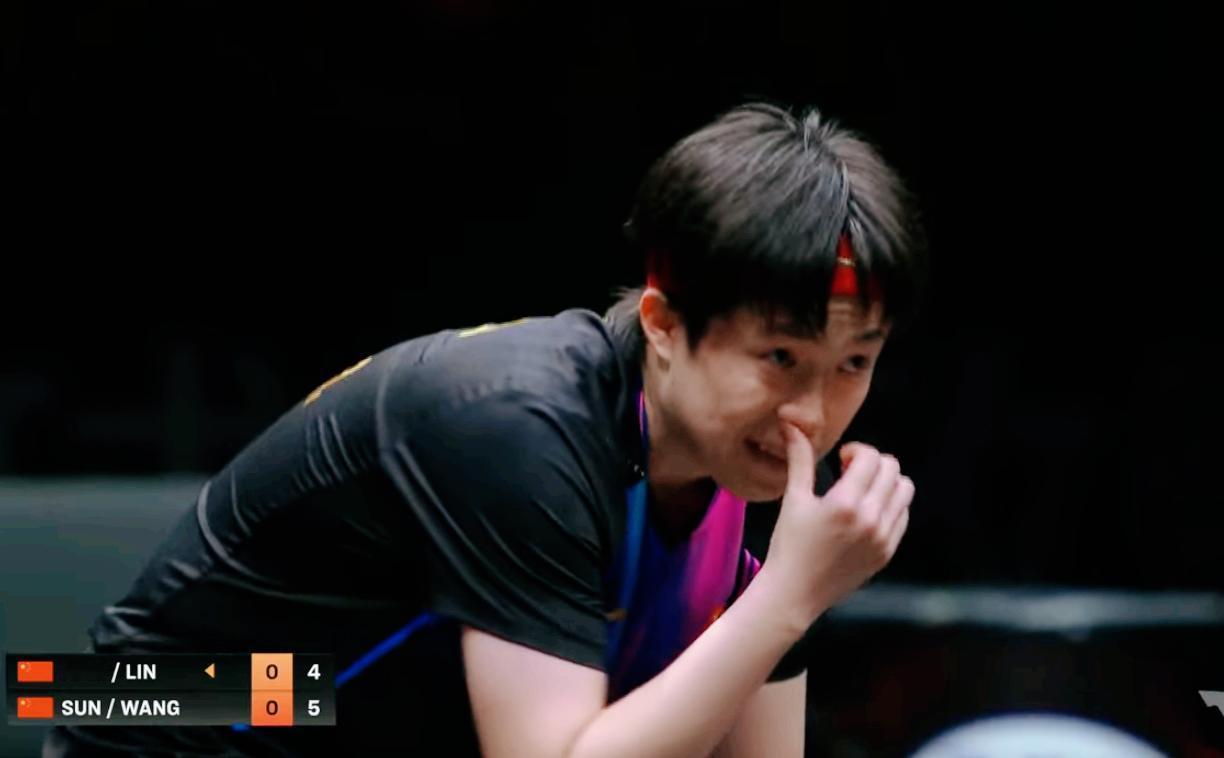 莎头和动漫的比赛, 就是三个男人和一个女人的比赛, 我指的是力气和打法, 孙颖莎的力量和反应速度完全不输男人, 而蒯曼压根接不住王楚钦的球, 这没法打! 石头赢一个, 蒯曼丢一个。 大头不好意思打的太凶, 爆冲了蒯曼一个, 你看蒯曼的表情,哈哈, 像个企鹅一样, 太可爱了! 林诗栋也爆冲了王楚钦一个, 还是倒地的那种, 但无济于事, 蒯曼和三人不一个力量级别。 第一局莎头13:11拿下, 但王楚钦和孙颖莎都没出全力, 所以不用看,莎头必赢!