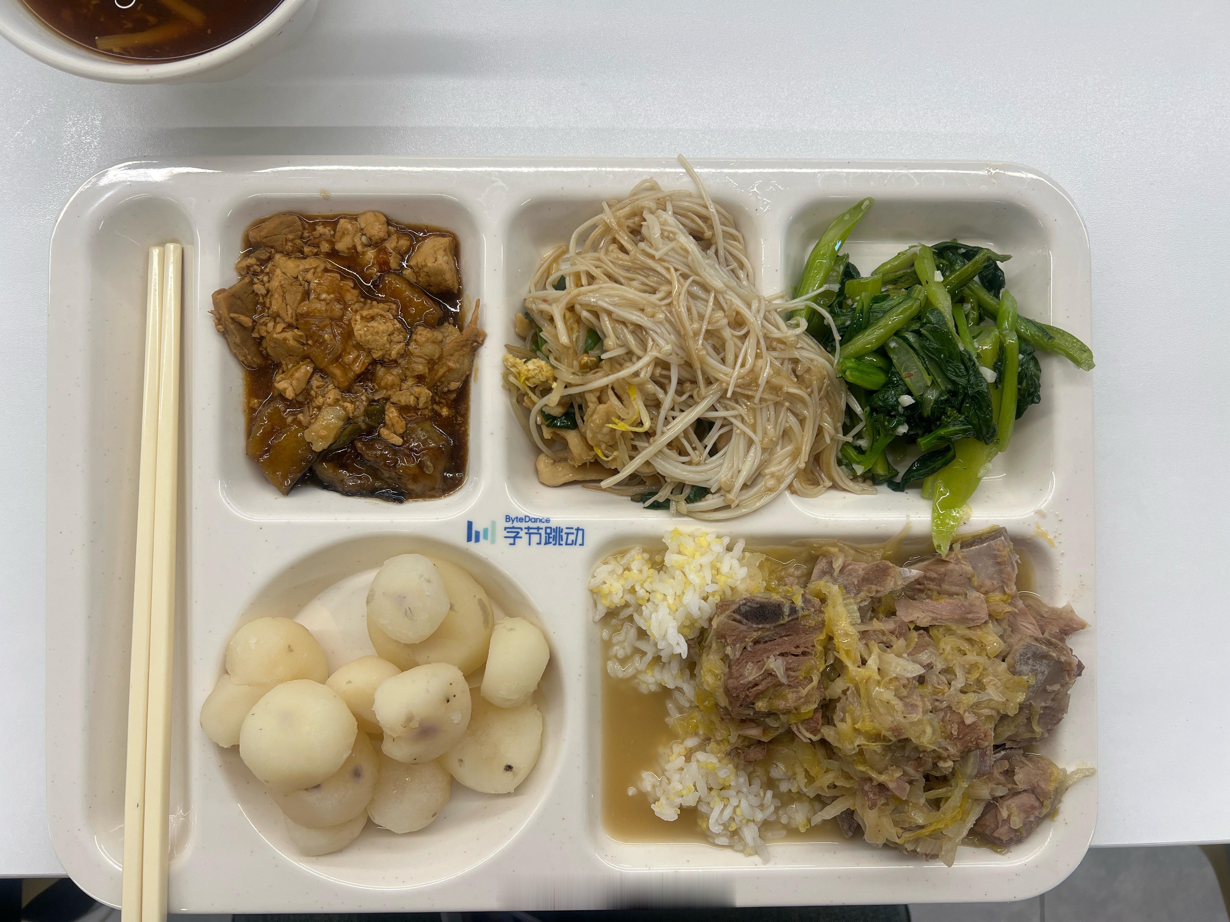 字节跳动100元餐标的免费三餐确实不错!之前最喜欢酸菜炖脊骨,还有各种各样的鱼,