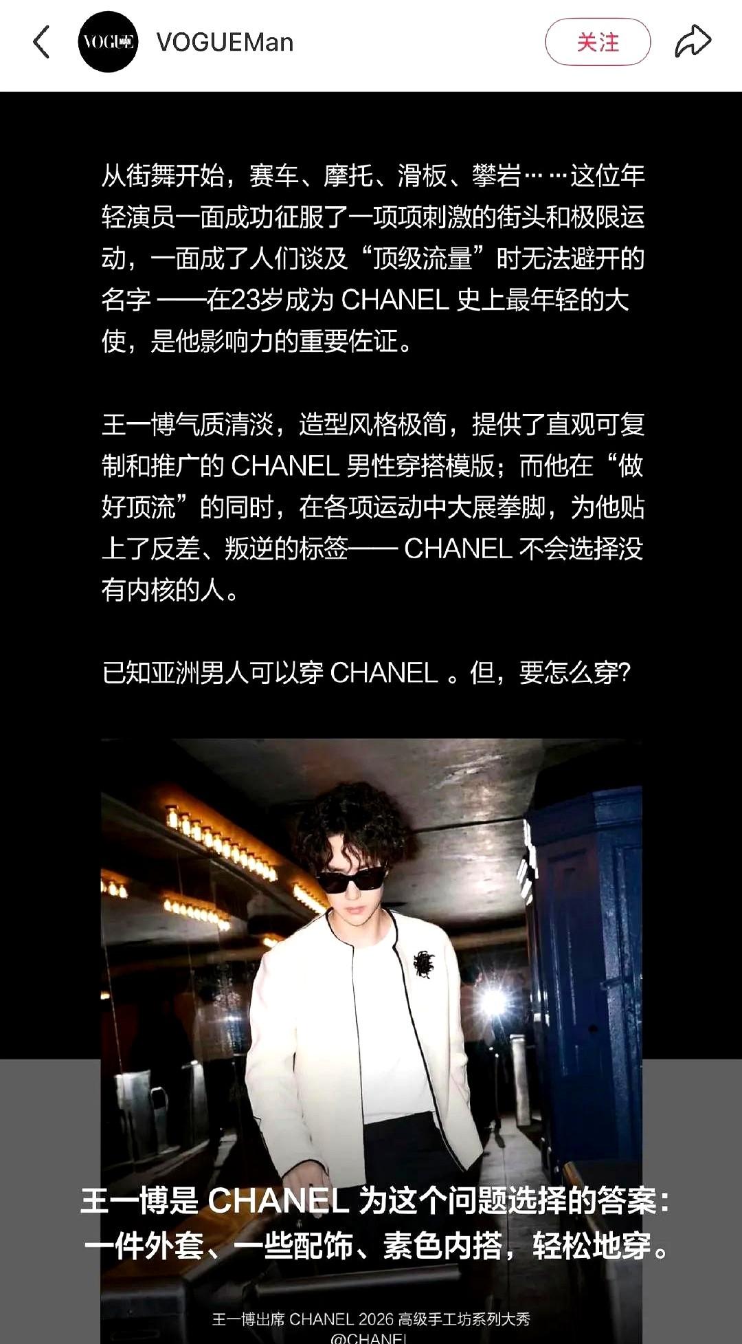 顶级奢牌开始不按套路出牌了。 香奈儿选王一博当大使,就是看中了他那股子街舞出身的劲儿,像给经典里加了颗“跳跳糖”。 官宣后品牌线上讨论度直接提了37%,这数据,这数据就是实打实的商业价值。 品牌基因里的叛逆感,需要这种有强烈个性的面孔来激活。 不只香奈儿,迪奥也玩起了跨界。 请谷爱凌当大使,一个“学霸+冠军”的多维形象,一下就把用户圈子拉大了。 相关广告片在抖音播放量破了5亿,证明这种个性牌打得多响。 这些大牌为啥都爱上了“跳脱感”? 因为消费主力变了。 贝恩咨询的数据说,中国市场72%的奢品买家会因为代言人特质产生消费冲动。 现在的年轻人买东西,更看重品牌跟自我表达是不是一回事,不然... 所以说,这些顶级奢牌的策略很清楚,用“贵气”打底,再找个先锋个性的活招牌来点睛,既维持了高端调性又避免了品牌老化。