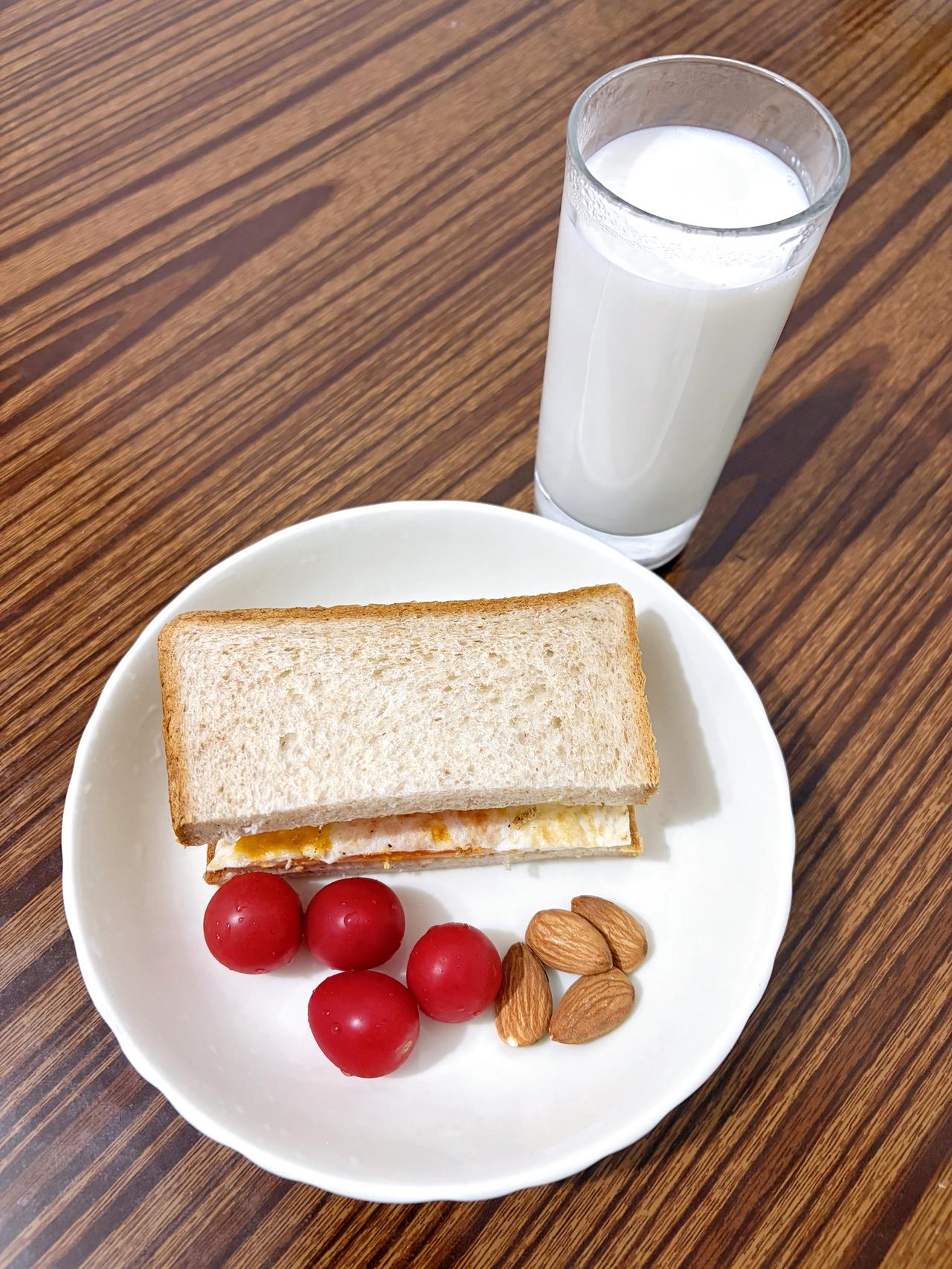 泪水打湿我的减脂餐,发誓瘦到103斤 今日体重:107.2斤⬇️0.2 今日减脂早餐:全麦面包+鸡蛋+番茄+干果+牛奶 体重管理 自律减脂健康餐 减脂早餐