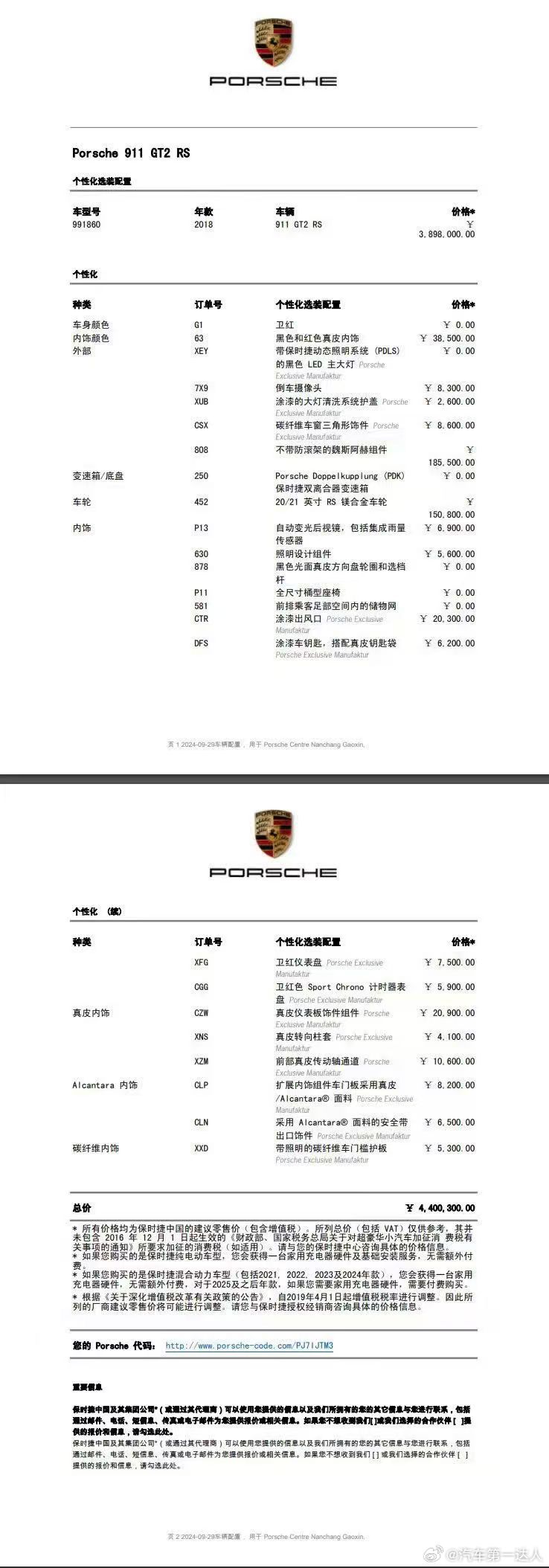 19年保时捷911 GT2 RS,5900公里,配置单440万