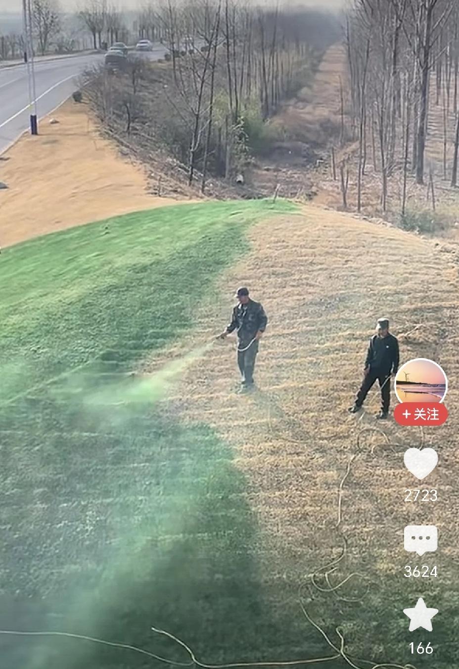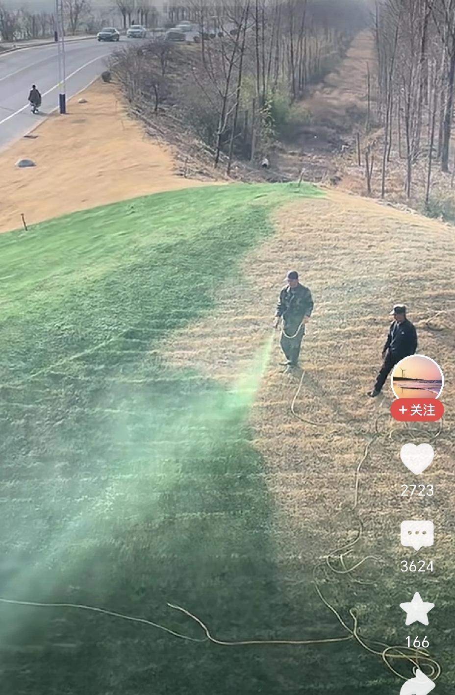 可悲哇,平地只要喷下就变成了草坪,是不是很神奇?