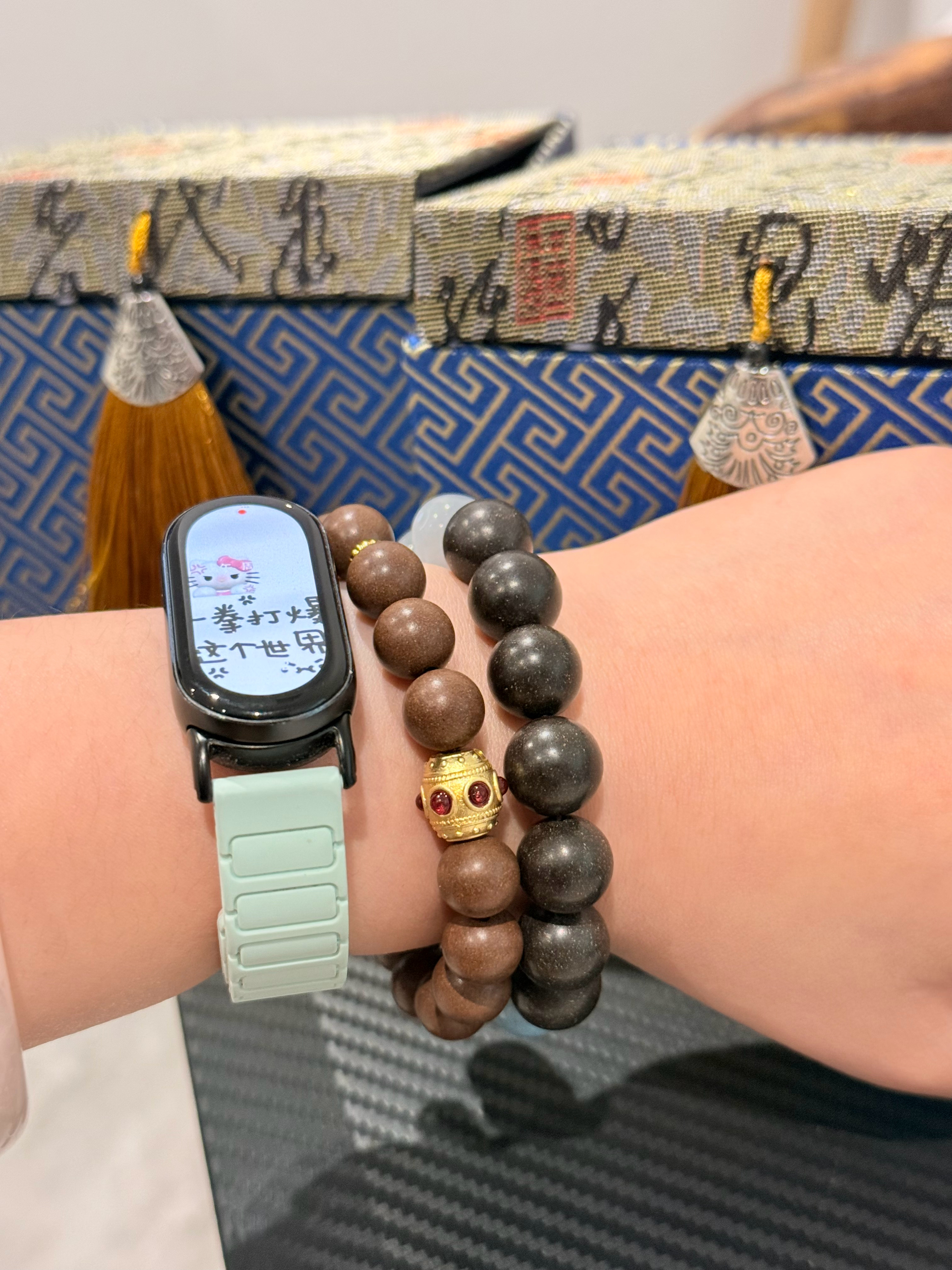 朋友送给我两个中药手串,说是能补气、养血、养心、健脾胃、养发、解郁、祛痰、祛湿等,中药味确实很足,不知道有没有效果。