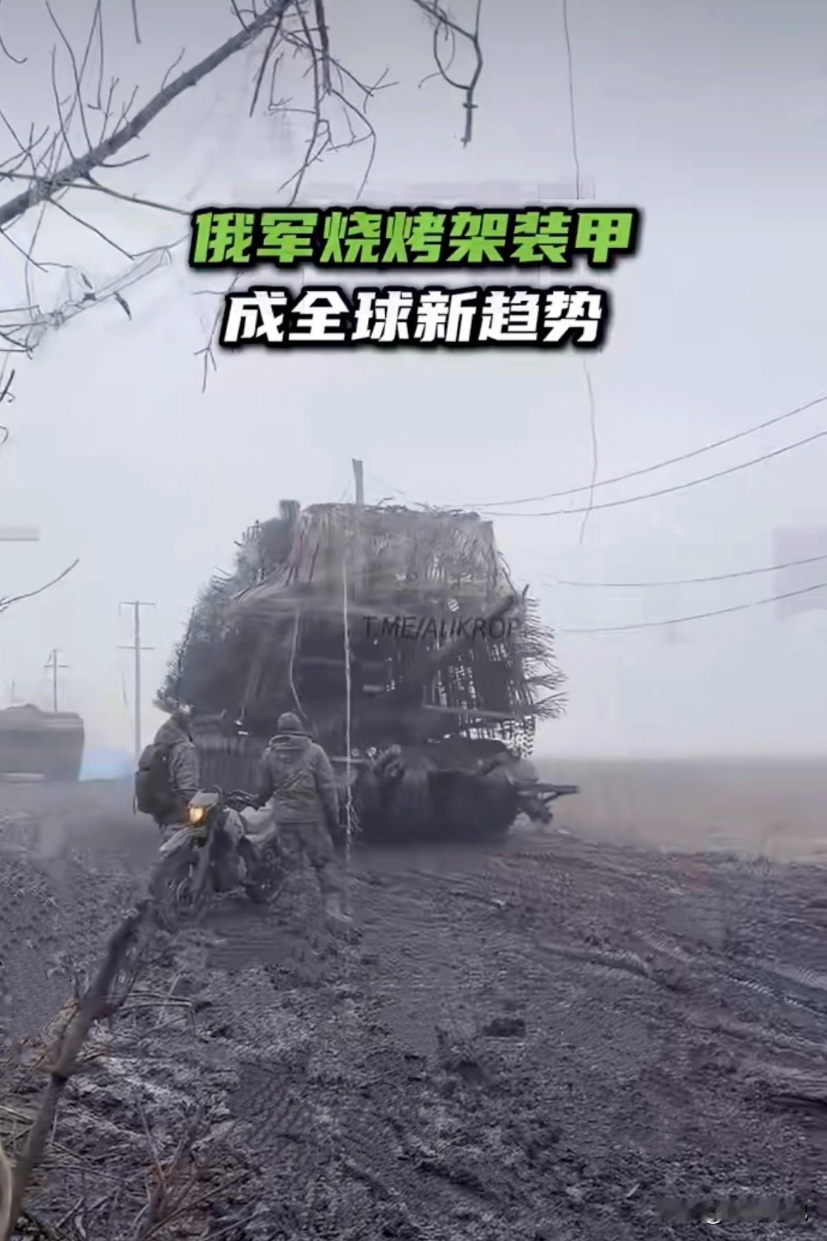 为应对无人机等新型威胁,俄军为所有前往前线的装甲车焊上了密布的钢条格栅,活像一身“刺猬外衣”。这种由前线士兵发明的土办法,如今已成装甲车的标配。 曾经线条硬朗的钢铁巨兽,如今浑身钢筋铁骨,毫无流线型的美观可言。这恰恰证明,战场现实压倒一切美观设计。无人机把传统装甲逼到如此地步,看似简陋的“烧烤架”却是最实用的生存答案——战场不相信华丽,只相信结果。
