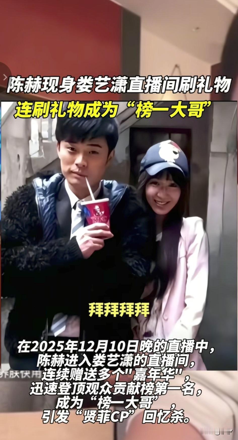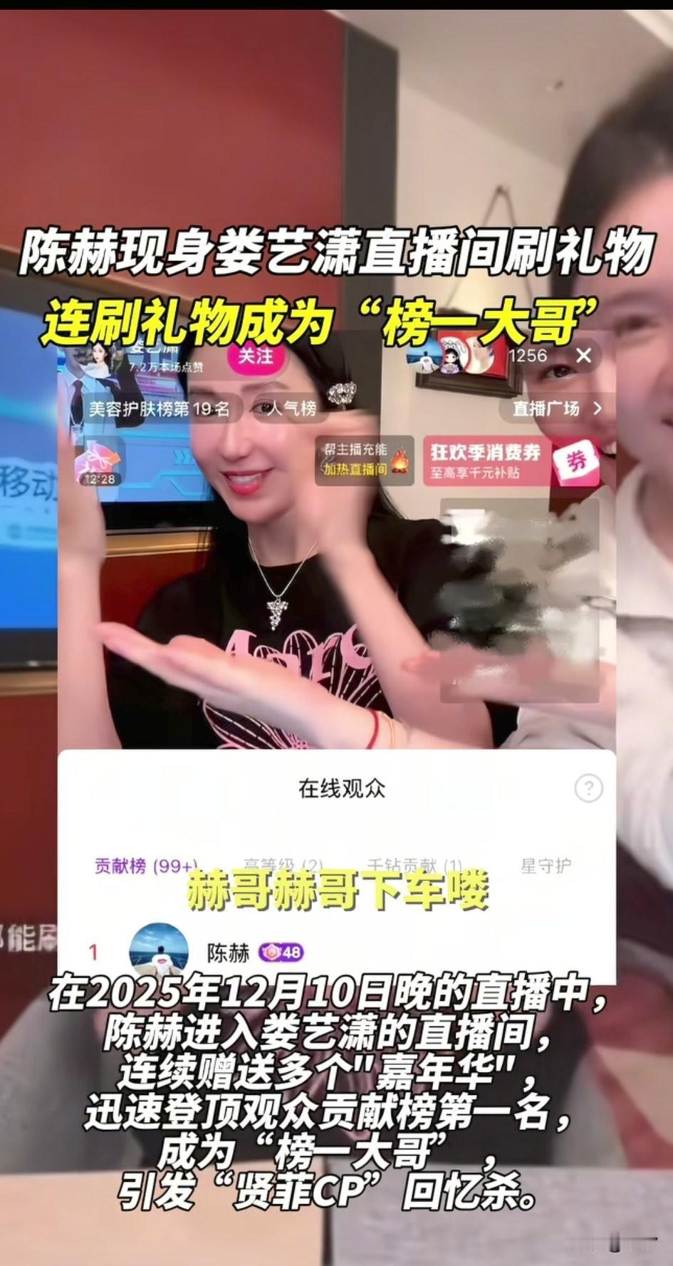 陈赫成为娄艺潇直播间榜一大哥, 瞬间冲上了热搜, 引发了人们对于贤菲cp的 回忆杀, 《爱情公寓》当时的火爆, 让曾小贤和一菲这两个角色深入人心, 陈赫饰演的曾小贤是真的贱, 娄艺潇饰演的一菲是真的霸气, 剧中两人没有走到一起, 现实中的两人也分道扬镳, 这次娄艺潇直播间, 陈赫的突然出现可以说很意外, 还说自己喝醉了, 不断的刷嘉年华成为榜一大哥, 这可让娄艺潇乐开了花, 最后他的助理提醒陈赫哥下车了, 这次联动真的让娄艺潇感动了, 表示下次陈赫直播她要去跳舞, 随后改口说去刷礼物, 这就是女人激动时候的自然表现, 那一刻似乎回到了数年前, 两个人一起演戏的日子, 都说演员会因戏生情, 那么长的陪伴, 没有感情是不可能的, 只不过两个人都有自己的生活, 这么多年娄艺潇的感情经历也不是很顺,只有陈赫娶妻生子, 这是热搜上的不亏, 大家对于两人的cp回忆杀怎么看? 爱情公寓 陈赫 娄艺潇 陈赫生日聚会 陈赫情商 娄艺潇旧照