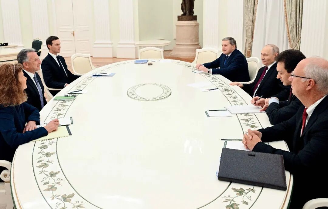 12月2日,在莫斯科克里姆林宫,俄罗斯总统普京(右三)会见美国总统特朗普特使维特科夫(左二)和特朗普女婿贾里德·库什纳(左三)。图/视觉中国