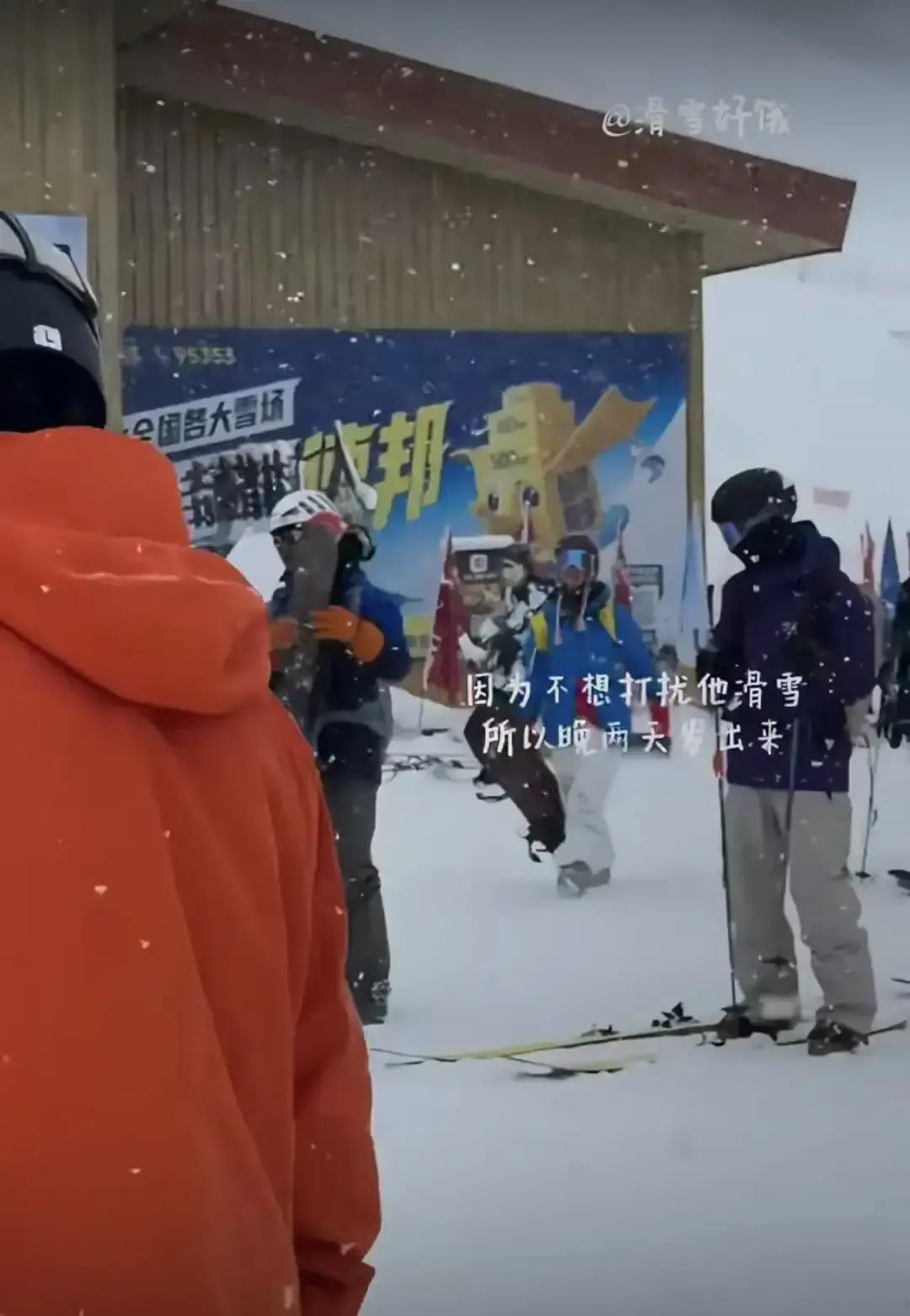 王一博和周鹏一起出现在雪场,被游客拍到并肩滑行的画面。 两人穿得专业,动作利落,