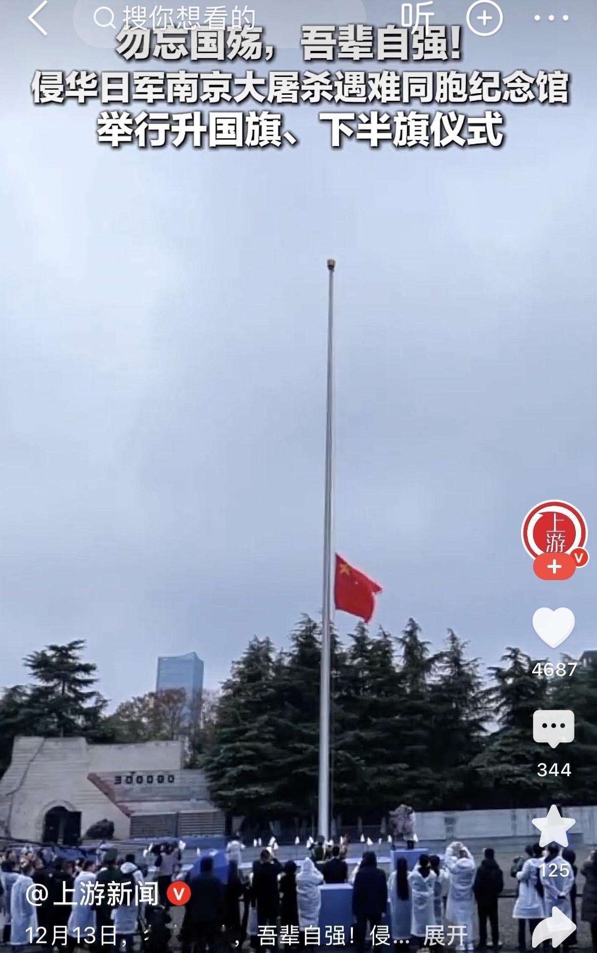 1937年的今天,是南京全城最黑暗的刻度;今天南京下半旗志哀!2025年12月13日是第12个国家公祭日。 我们深切缅怀所有惨遭日本侵略者杀戮的死难同胞,缅怀为中国人民抗日战争胜利献出生命的革命先烈和民族英雄,缅怀同中国人民并肩抗击日本侵略者的各国烈士。