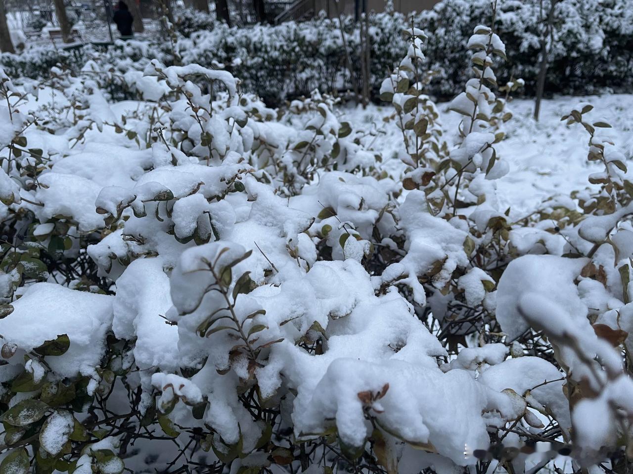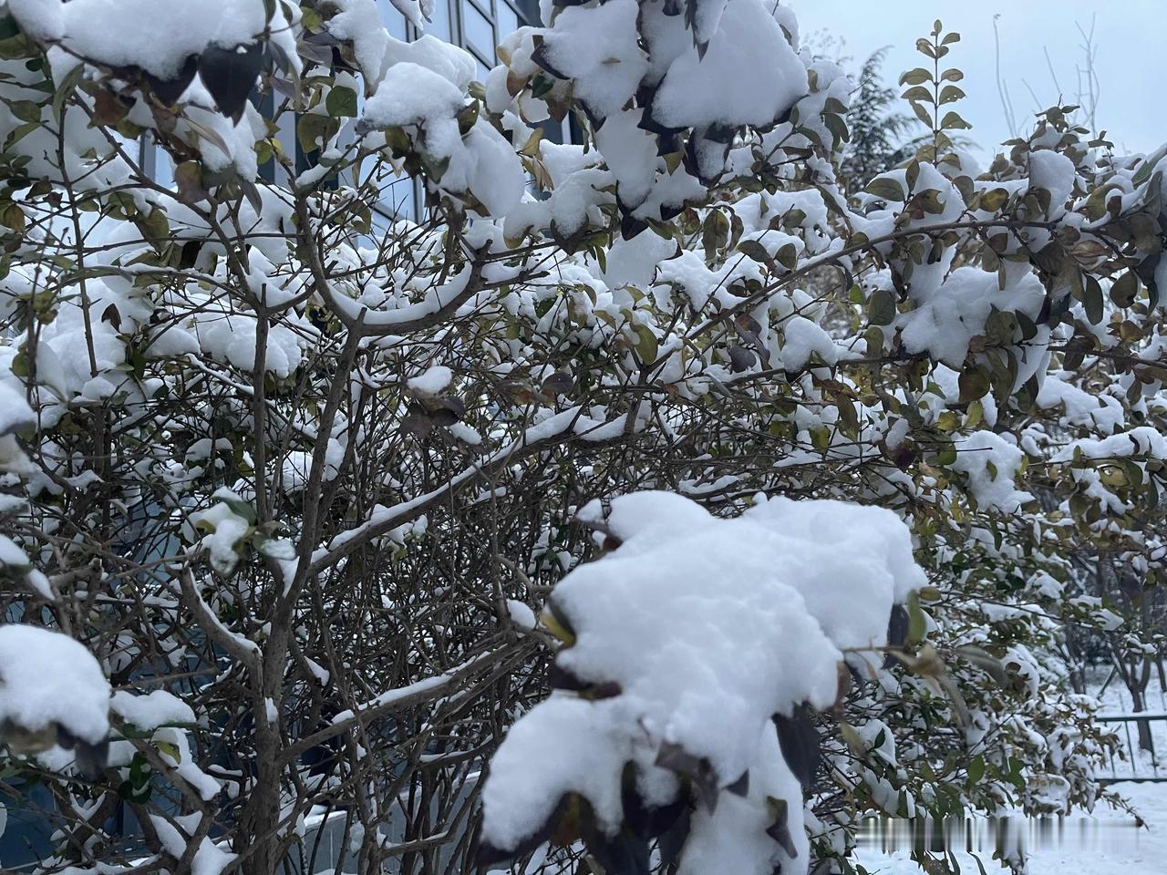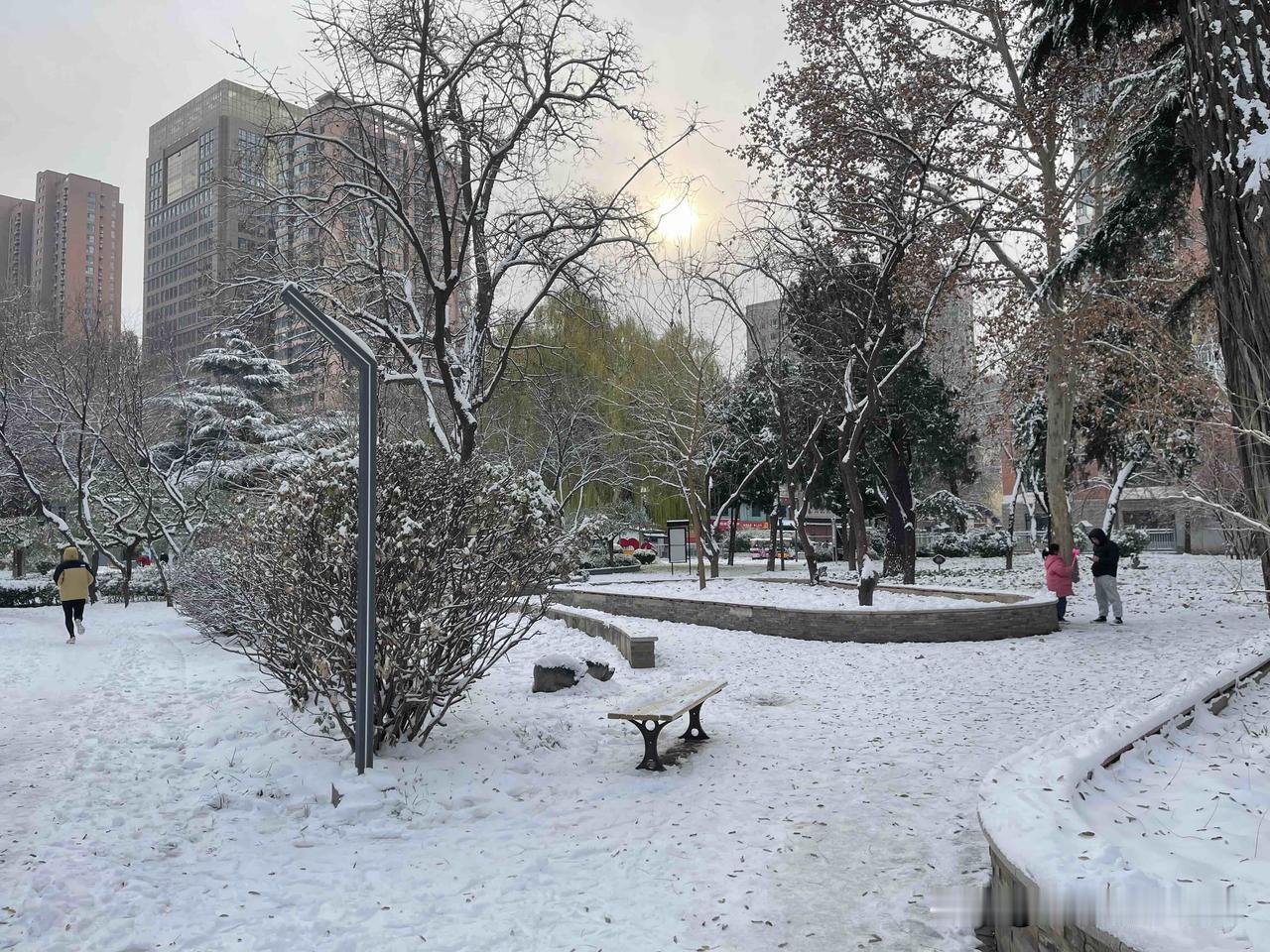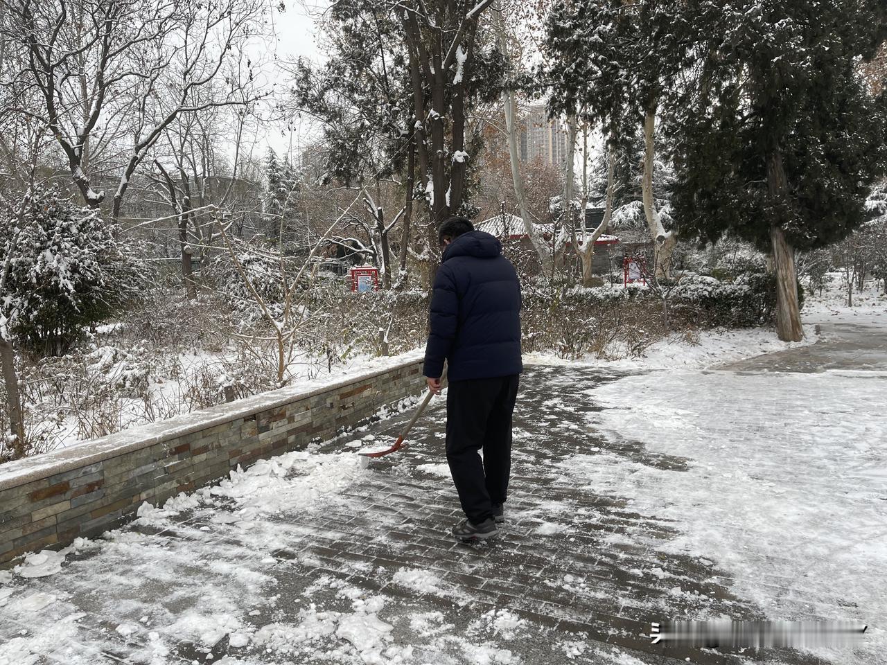 昨天下了一场不算小的雪,从早上到小小雪粒,到下午的雪花飘飘,再到面粉洒落一样的粉状,天地一色,白纱笼罩,地上也白白的厚厚的,脚一踩吱扭吱扭地发出响声,出去逛了一圈,满身雪花,清清凉凉,孩子们也按耐不住跑出来玩耍。 今天早上家旁的少儿活动中心比往常清净了很多,公园里有有几棵很高大的松树,树冠像巨伞,上面压上满满一层白白的雪,白绿相间,让人想起陈毅元帅的诗:大雪压青松,青松挺且直。要知松高洁,待到雪化时。赏完雪景和公园工作人员借了铁锹铲起了雪,一铲就是两小时,也不觉得累。